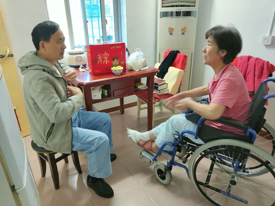 此外,端午节前一天,老万7点多钟就出门和志愿者瓷娃娃、皎洁、王罗平一道走访慰问困境中的失独家庭。在患中风瘫痪、精神障碍疾病的王文、王建英家中,志愿者们详细询问夫妻俩从养老院回家后的生活情况,叮咛注意用电用气安全。