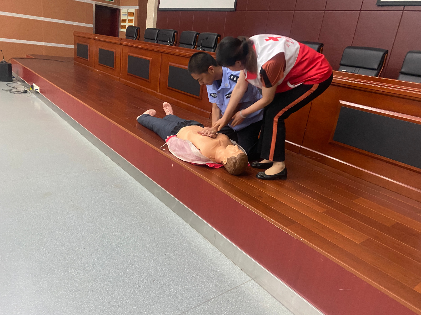 培训围绕警务辅助人员日常工作中易遇的突发伤害事件,详细讲解了相关的应对和救护知识,比如生活中常见的车祸、摔跌伤、中暑、昏厥等。特别针对极易致命的气道梗阻、心跳呼吸暂停,传授了海姆立克法和心肺复苏术等急救技能。