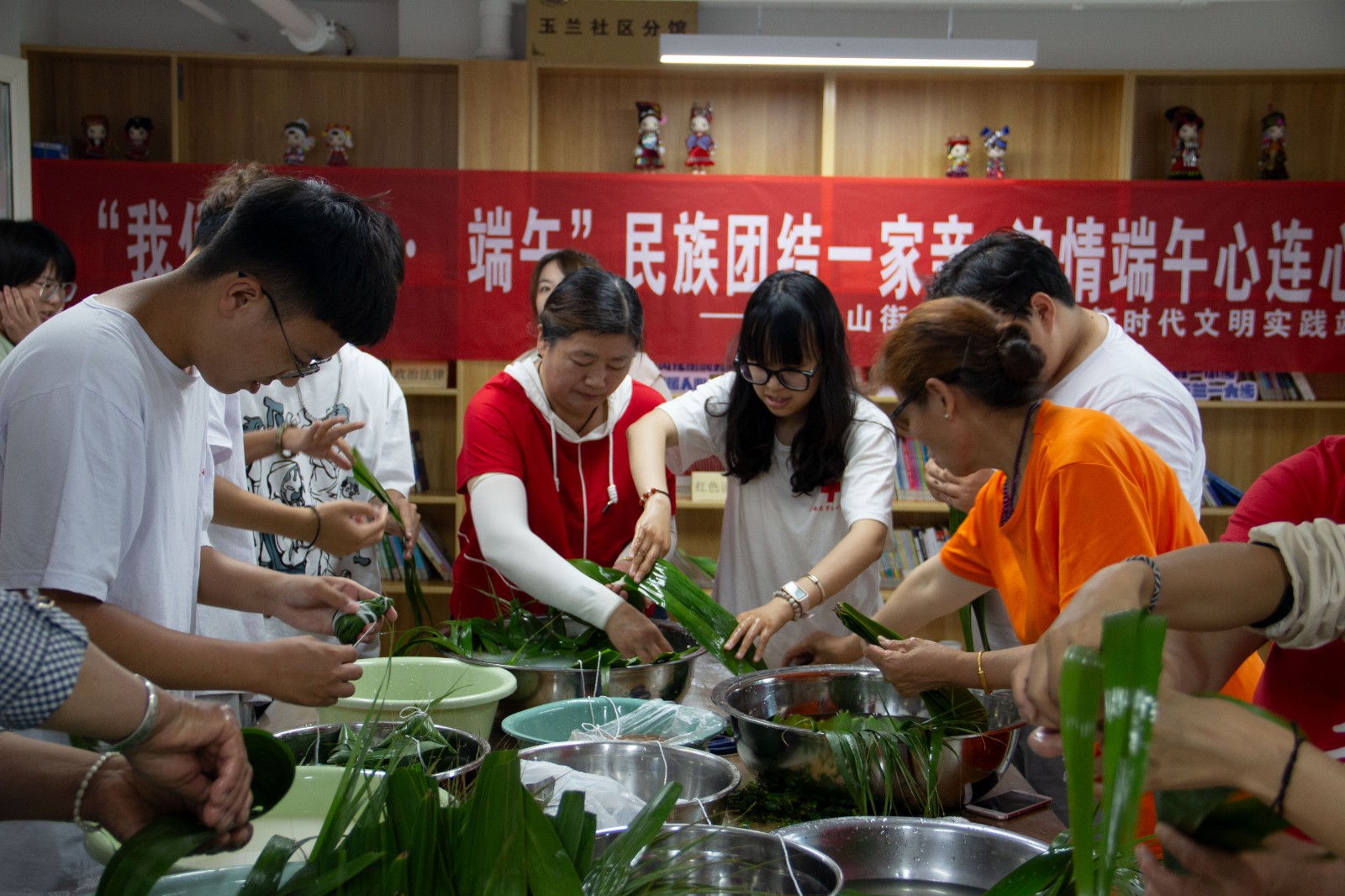 绿杨带雨垂垂重,五色新丝缠角粽。农历五月初五,是中华民族传统的节日——端午节。为了弘扬中华传统文化,增强学生爱国主义情感,机电工程学院红十字志愿者联合玉兰社区开展 “端午‘粽’情中国节,民族团结一家亲” 主题活动,玉兰社区居民与我院红十字志愿者们及来自藏族、回族、满族的少数民族学生们,欢聚一堂,共同感受节日的浓厚氛围。本次活动由机电工程学院党总支、关工委、团委主办。