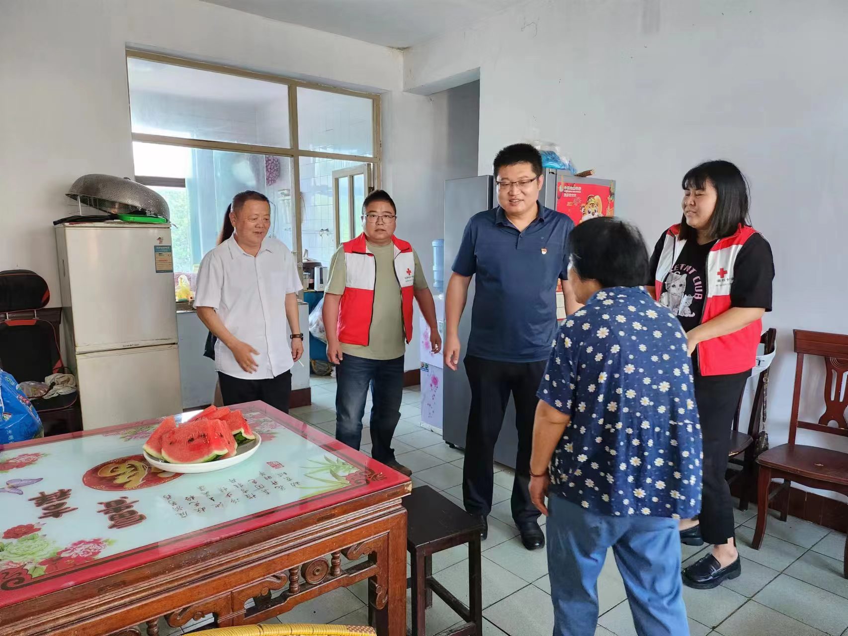 为进一步弘扬“人道、博爱、奉献”的红十字精神,让困难党员感受到党组织的温暖,6月27日,启隆镇永隆社区博爱家园开展“喜迎七一节 博爱小区行”活动。启隆镇永隆社区党总支倪书记和东平镇长江新村武书记走访慰问永隆社区陆守和与蔡兵二名困难党员。每到一名困难党员家中,博爱家园志愿者认真与他们交谈,了解他们的身体情况和生活情况,询问是否还有需要帮助的事情,并送上慰问品。
