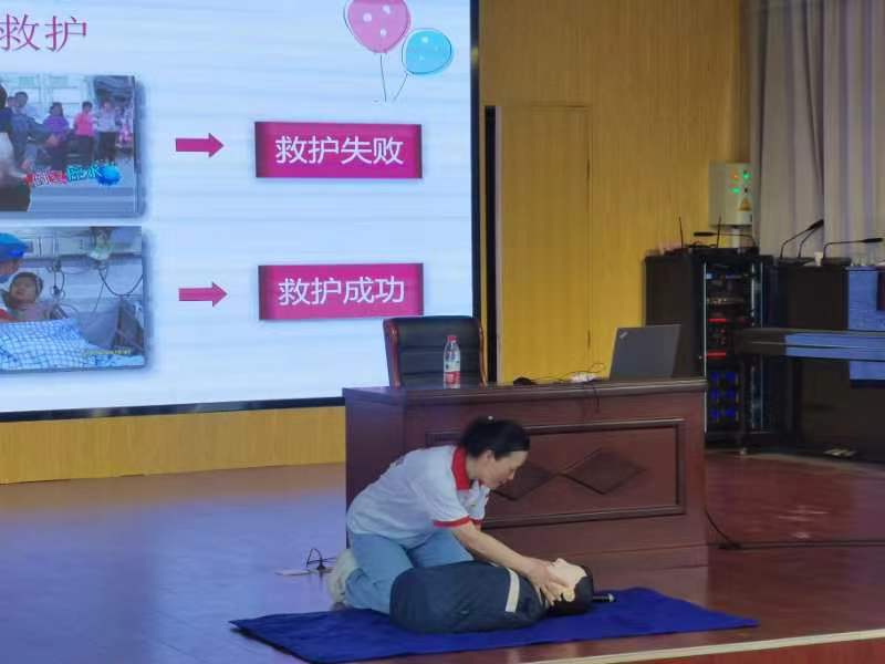 “如何预防溺水?溺水后如何自救?发现别的小伙伴溺水后我们应该怎么做?” 市红十字应急救援队队员周忠兰结合生活中的实际案例,讲述发生在身边的溺水事件,帮助学生们切身感受到水边玩耍的危险性。同时周老师还利用模拟人,向同学们展示了自救和施救他人的方法。为了加深学生们对防溺水知识的了解,周老师采用互动问答、现场演示等方式,让学生们参与其中,使同学们在轻松愉悦的氛围中,学习掌握防溺水知识。