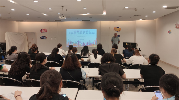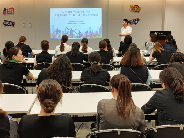 为普及健康生活意识,提高全民参与健康行动的良好氛围。6月27日,盐城市红十字会医院慢病科联合文峰街道板桥社区党总支、亭湖区疾控中心为文峰街道板桥社区金鹰购物中心40多名员工开展了全民健康生活方式指导员及“三减三健”知识讲座。
