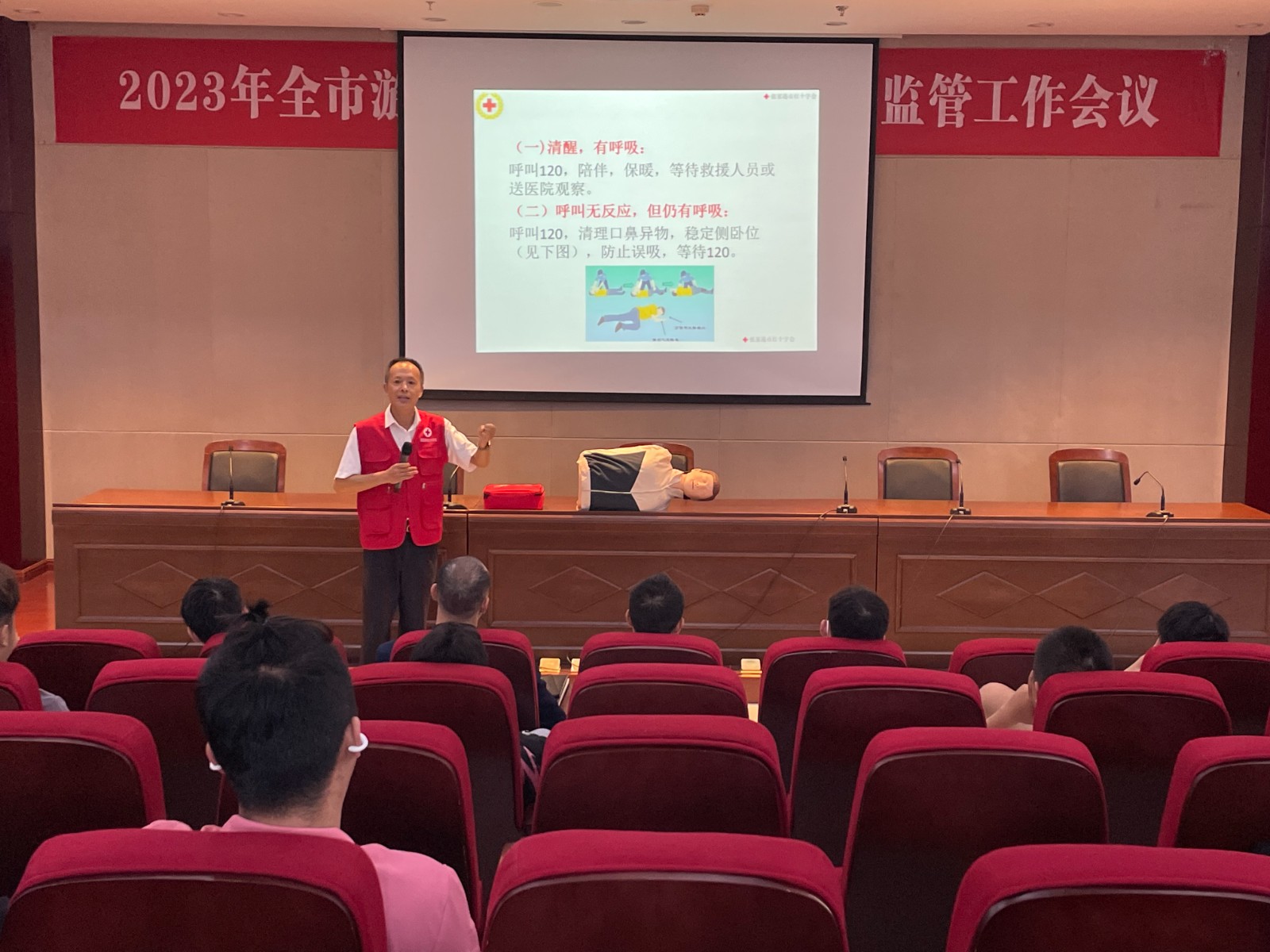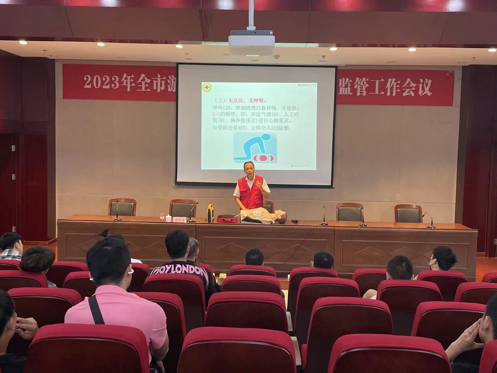 夏季到来,气温持续飙升,溺水事故进入危险期、易发期、高发期。为进一步加强全市游泳场所的安全管理工作,提高游泳场所负责人和管理人员的应急救护水平,近日,张家港市红十字会联合市文体广旅局对全市游泳场所48名安全负责人组织开展救护培训工作。