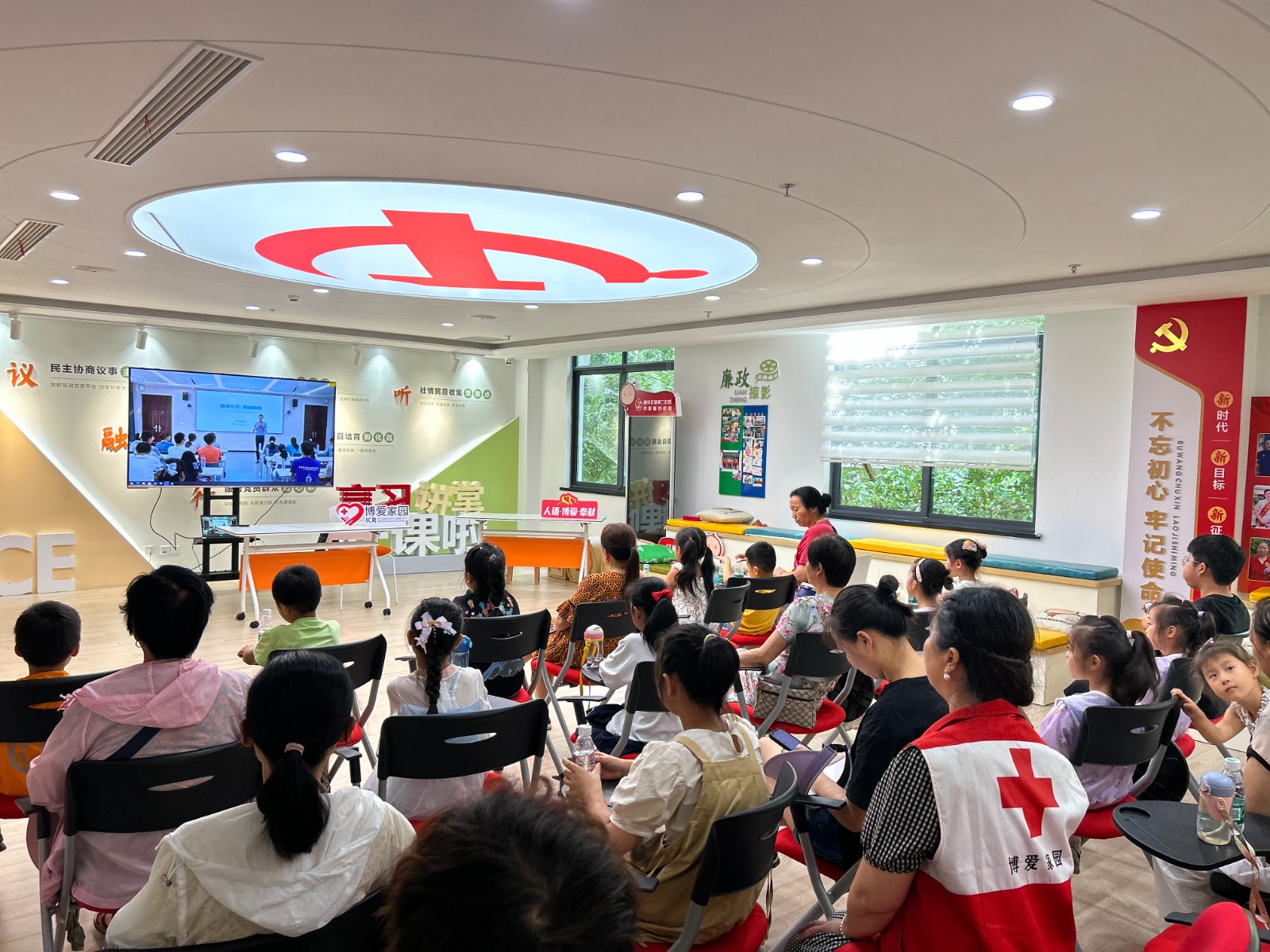 6月28日下午,无锡市红十字会组织23个建有博爱家园的基层社区分别设立分会场,共计500人参加江苏省红十字会主办的“守护生命与健康 红十字‘救’在身边”为主题的“博爱送健康进校园”公益健康科普云课堂直播活动,在线收看南京师范大学心理学院教授、博士生导师傅宏带来的专业健康知识讲座,和同学们一起聊一聊心理健康那些事儿。