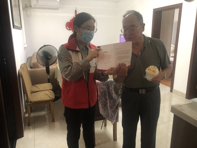 “同庆党的生日 感受党的温暖”在“七一”来临之际民乐新村社区博爱家园开展博爱送万家活动。博爱家园的志愿者对社区困难党员进行走访慰问。志愿者为他们带党徽同时把米、油、生日贺卡和生日蛋糕送到老党员手上并亲切的询问近期生活和身体情况,嘱咐他们保重身体的同时希望他们发挥党员先锋模范作用继续为社区的建设发挥余热。