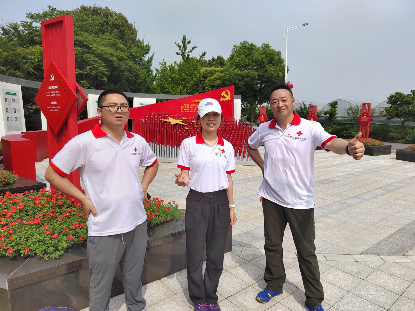 为庆祝中国共产党成立102周年,7月1日,镇江市红十字应急救援队在丹徒区世业洲开展了一场以“初心之路”为主题的“七一”党建救援科目训练活动。