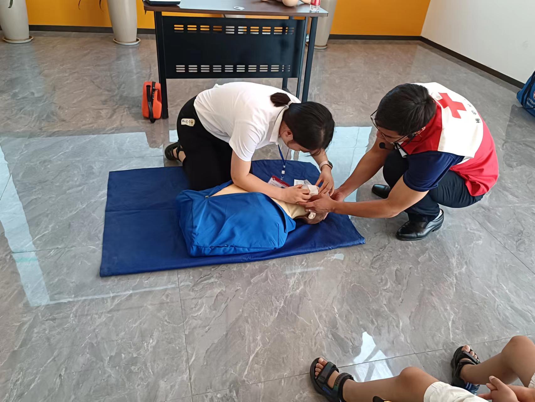 在培训现场,培训老师结合日常生活中遇到的案例,采取理论讲解和实操相结合的方法,讲解了心肺复苏、AED使用、海姆立克急救法、防溺水等知识和技能,确保意外发生时能正确施救。