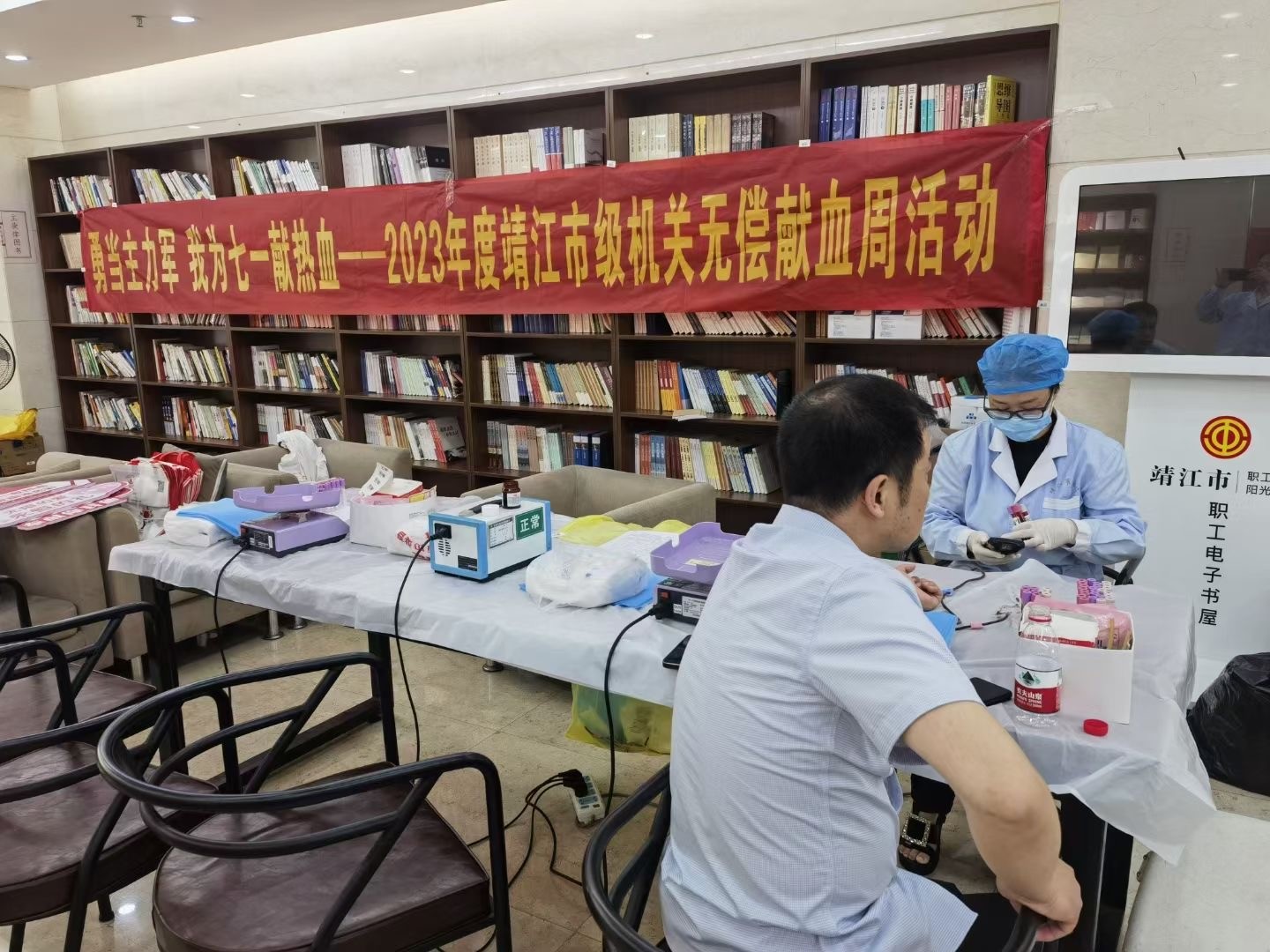 为庆祝中国共产党建党102周年, 7月1日,靖江市红十字会联合市血站在市行政中心开展“我为七一献热血 我为党旗添色彩”七一无偿献血活动,广大党员干部职工积极参与,用实际行动向党的生日献礼。
