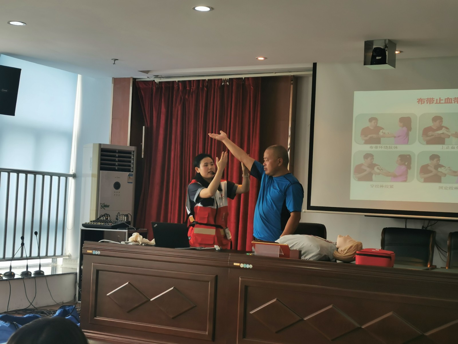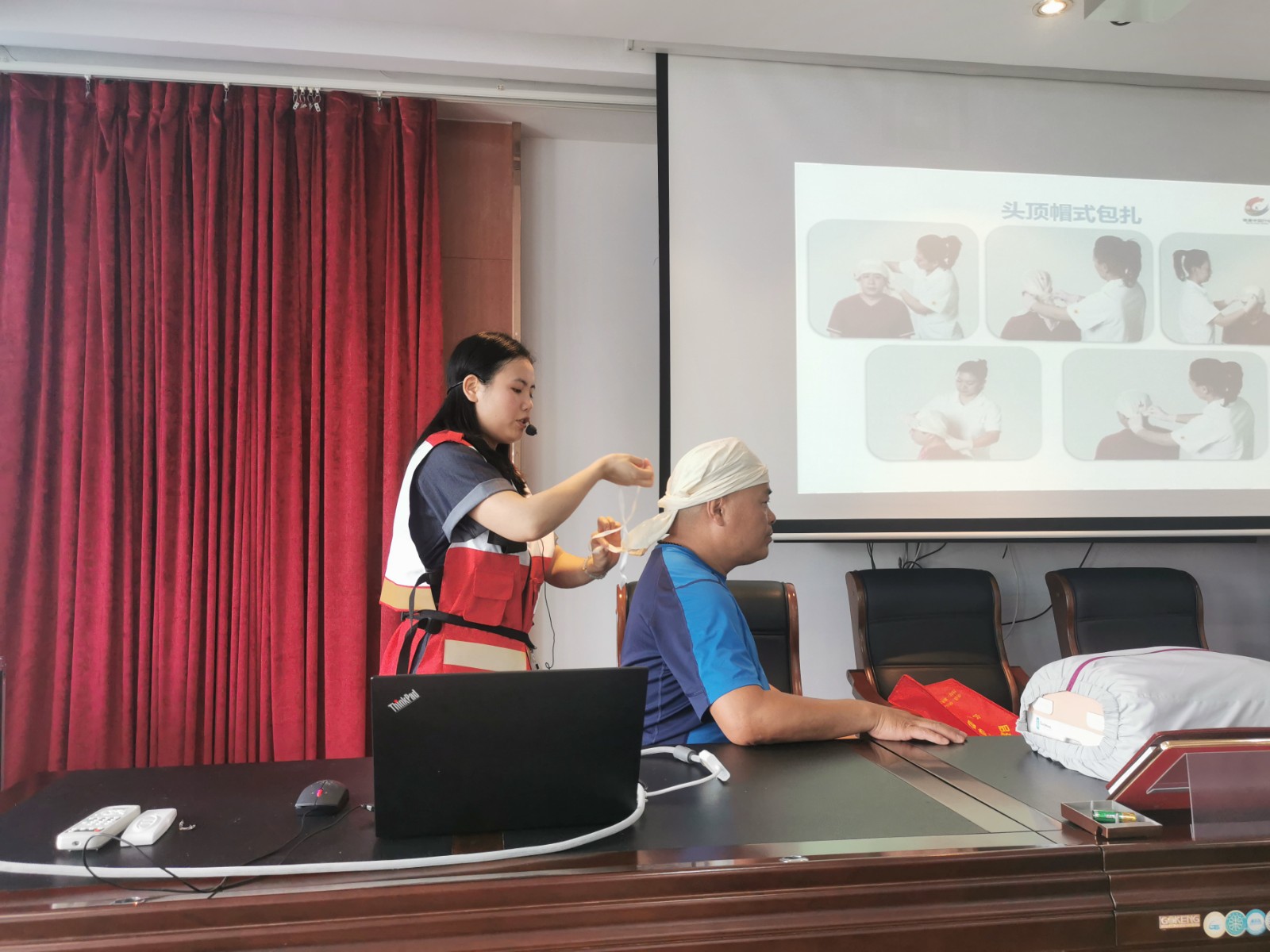 培训课上,培训老师首先介绍了红十字运动的基本知识和红十字会的主要工作。随后,老师重点针对日常生活中较为常见的意外事故,向在场学生详细讲解并操作演示了心肺复苏、AED使用、骨折固定、外伤包扎、海姆立克急救法等急救技能和相关知识。