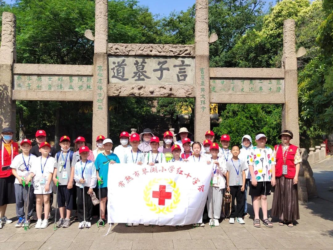 6月11日上午,冒着炎炎暑热,一支红十字志愿服务小队穿梭在亮山工程,他们头戴红色志愿帽,手拿垃圾钳,时不时弯下腰来捡起垃圾,又继续埋头前进,他们是来自常熟市琴湖小学的“琴花”志愿服务队。