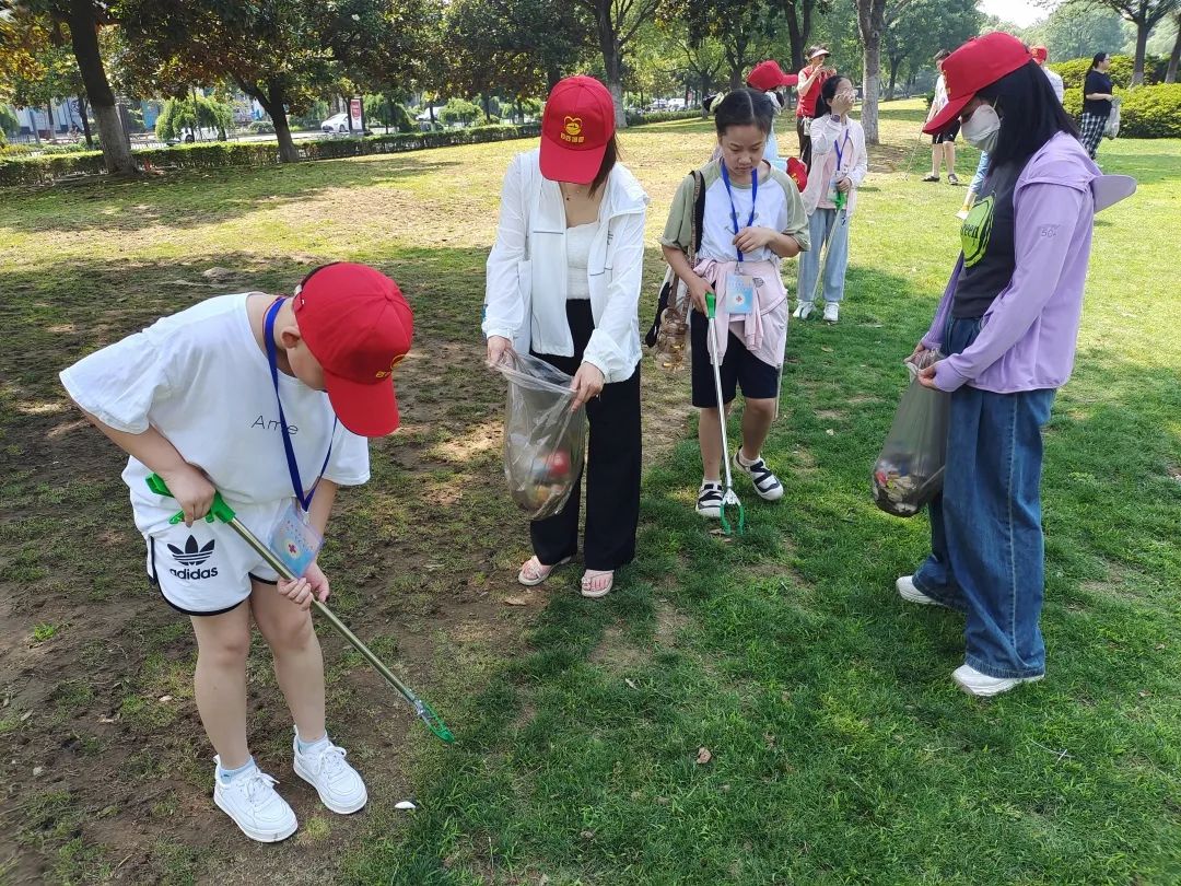 小队分为两组,在队长的带领下走进亮山工程,细心观察,把烟头、塑料包装袋、食物残渣等各类垃圾捡拾进垃圾袋。虽然天气炎热,小志愿者和家长们没走几步就满头大汗,但没有一个人退缩,大家用实际行动践行红十字精神。