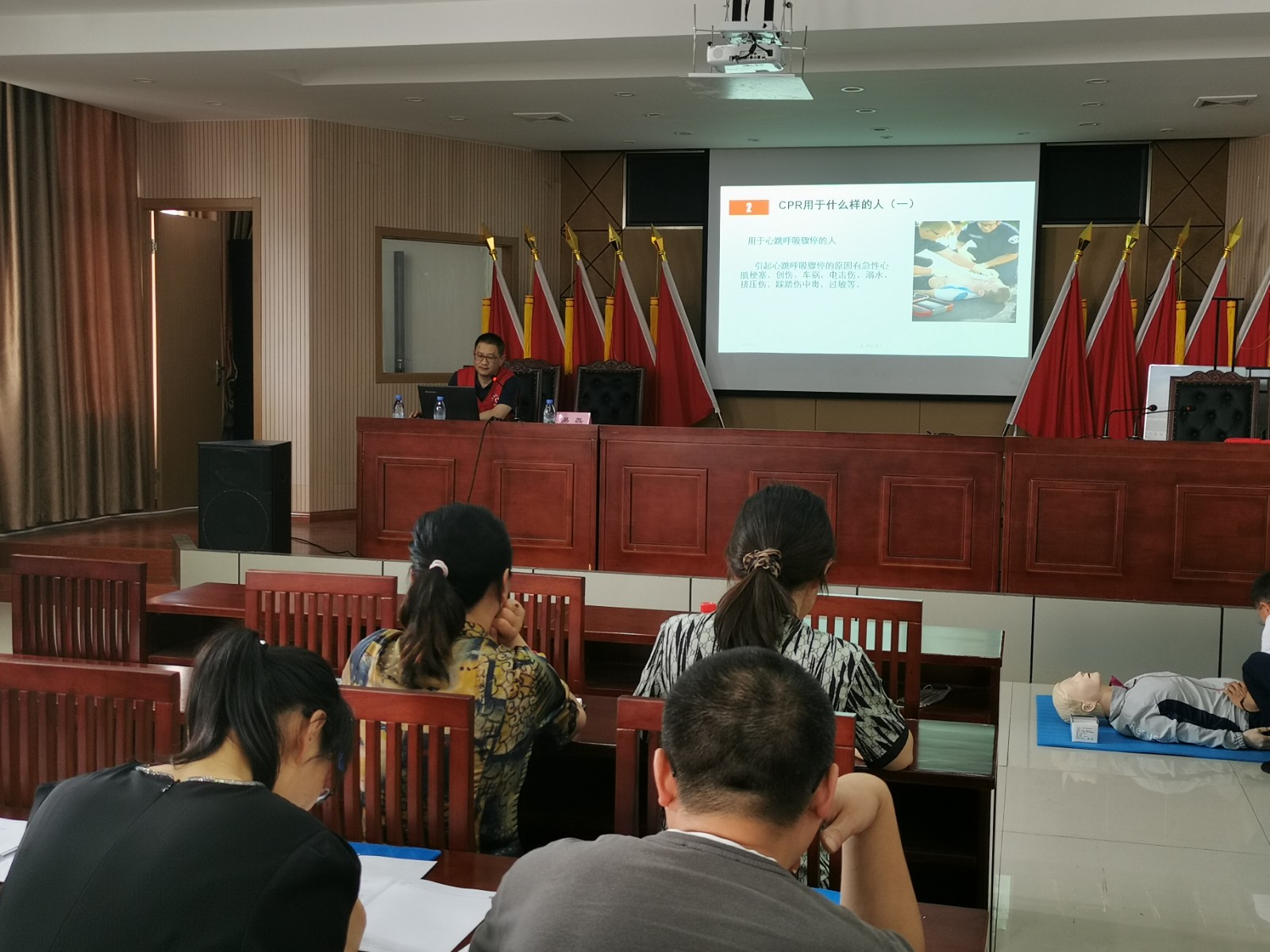 培训会上,老师为大家就常见急症及意外伤害的急救处理、重大交通事故的急救处理、火灾事故现场的急救处理、触电溺水事故急救处理、地震逃离的紧急逃生及心肺复苏、气道异物梗阻、创伤救护等自救互救知识进行了讲解,并通过生动具体的实例结合理论知识,让大家知道在遇到此类突发状况时如何正确有效地开展应急处置。