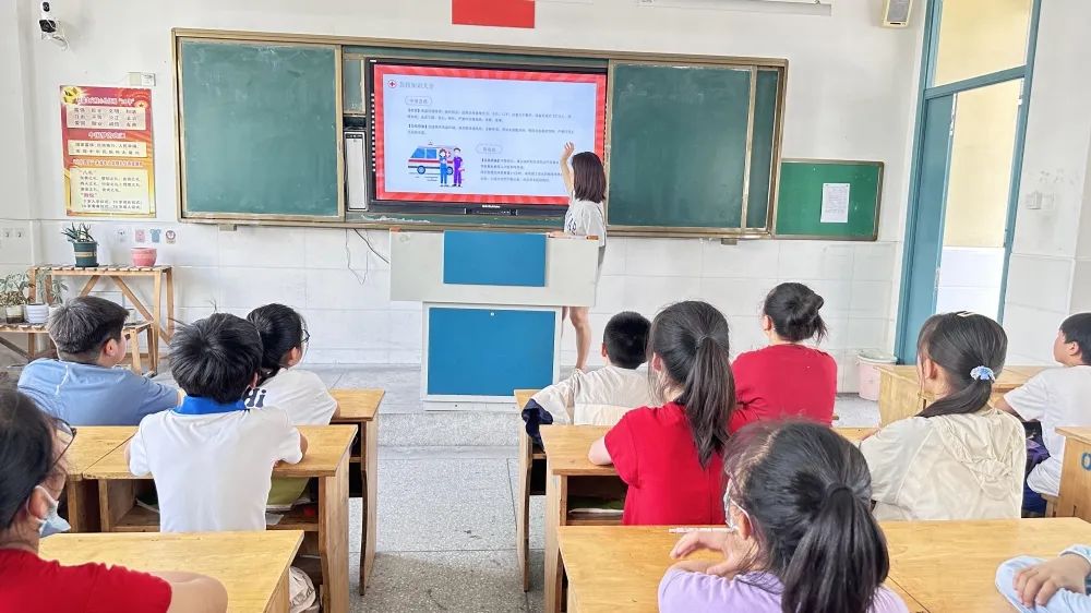 红十字小课堂。竞赛开始前,各班对学生进行了专题教育。老师们先介绍了红十字运动的起源、红十字的标志、红十字的精神等,接着详细地讲解了多种常见意外的急救方法:中暑、骨折、烧烫伤、煤气中毒、溺水……学生们认真听讲,积极互动,纷纷表示收获很大。