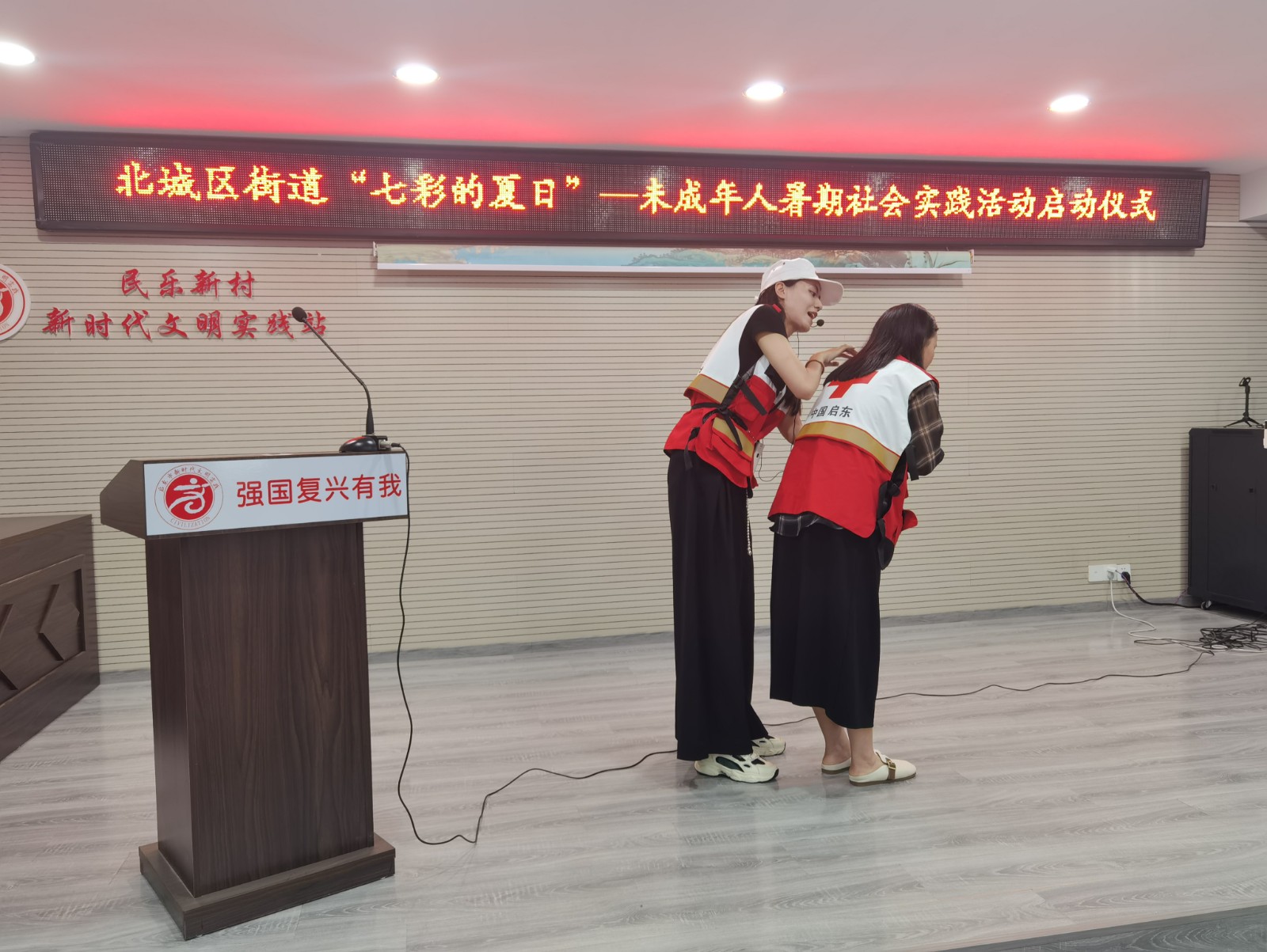 为丰富辖区未成年人暑期生活,促进未成年人综合素质全面提升,坚持用习近平新时代中国特色社会主义思想铸魂育人,认真落实立德树人根本任务,围绕“扣好人生第一粒扣子”,7月12日,北城区街道新时代文明实践所联合民乐新村博爱家园在民乐新村社区举办2023年度“七彩的夏日”——未成年人暑期社会实践活动启动仪式。参加此次活动的有北城区街道党工委委员、办事处副主任袁晔晔、各社区关工委常务副主任、相关科室人员、博爱家园志愿者以及社区青少年朋友们。