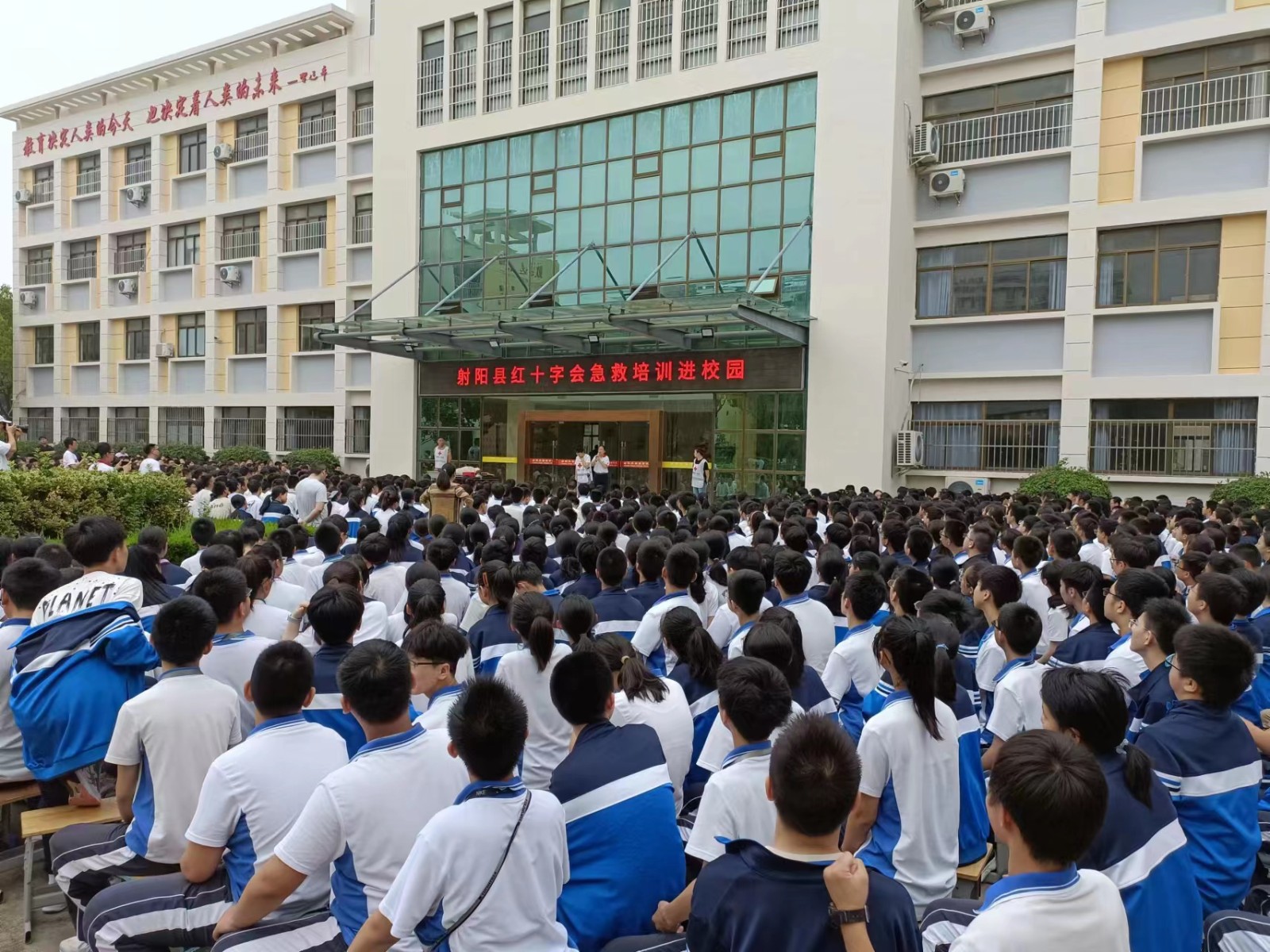 7月14日上午,射阳县红十字会为县外国语学校初二、初三全体同学开展了一期应急救护培训活动。