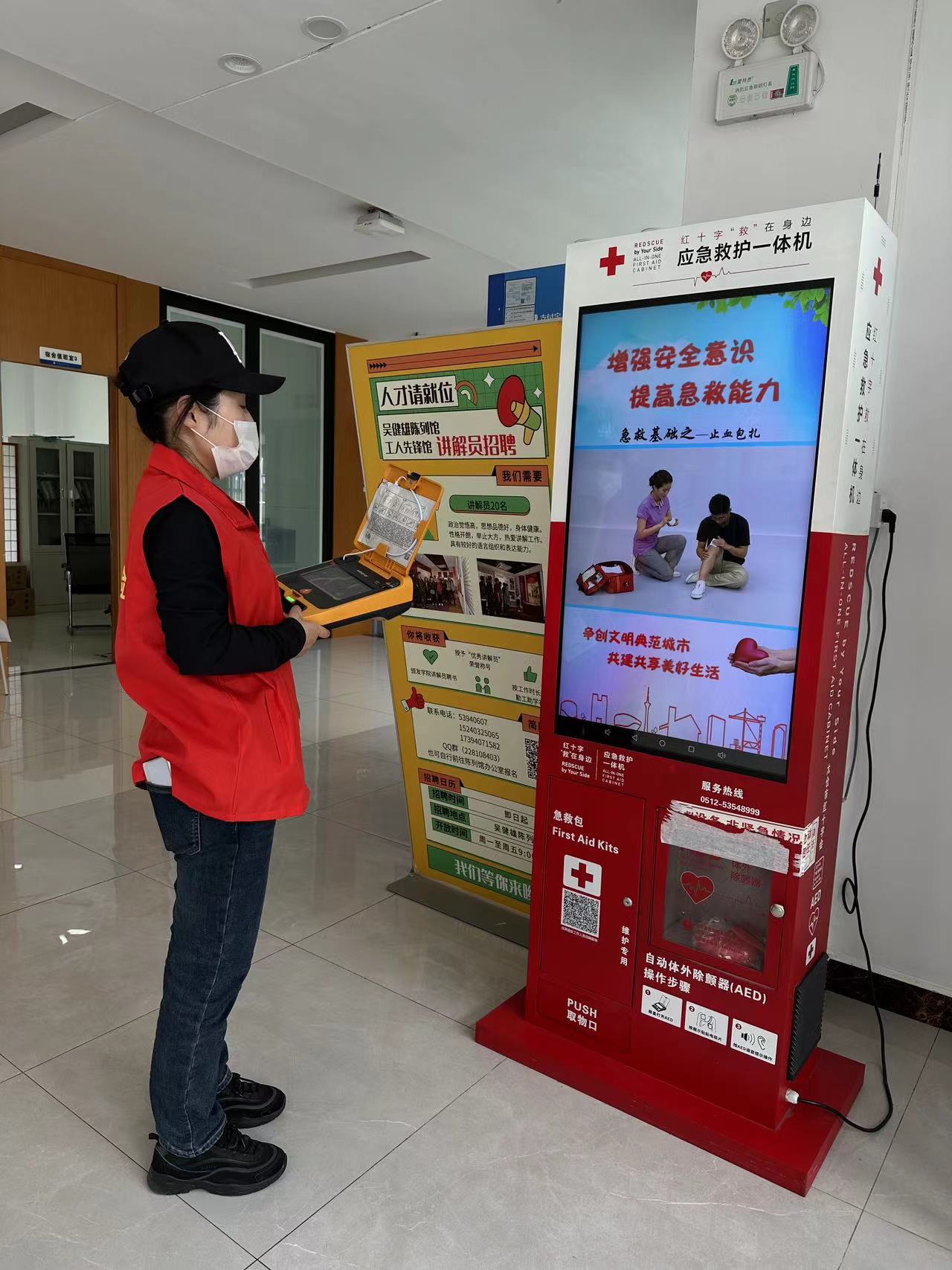 自动体外除颤器是一种便携式、易于操作,可被非专业人员使用的用于抢救心脏骤停患者的医疗设备。2021年依托政府实事项目,太仓市红十字会在学校、商超、景点等人流密集地布置了180台救护一体机。设备投放以来,市红十字会建立巡检制度,安排维保人员赴全市展开巡检,内容主要包括设备状态是否完好,报警功能是否正常,电极片、电池等耗材是否过期等,确保AED设备始终处于良好可用状态。