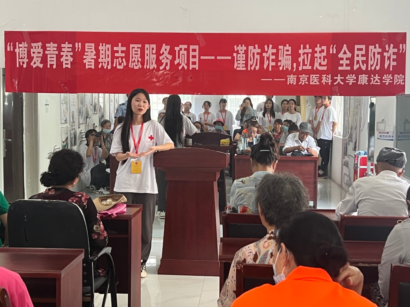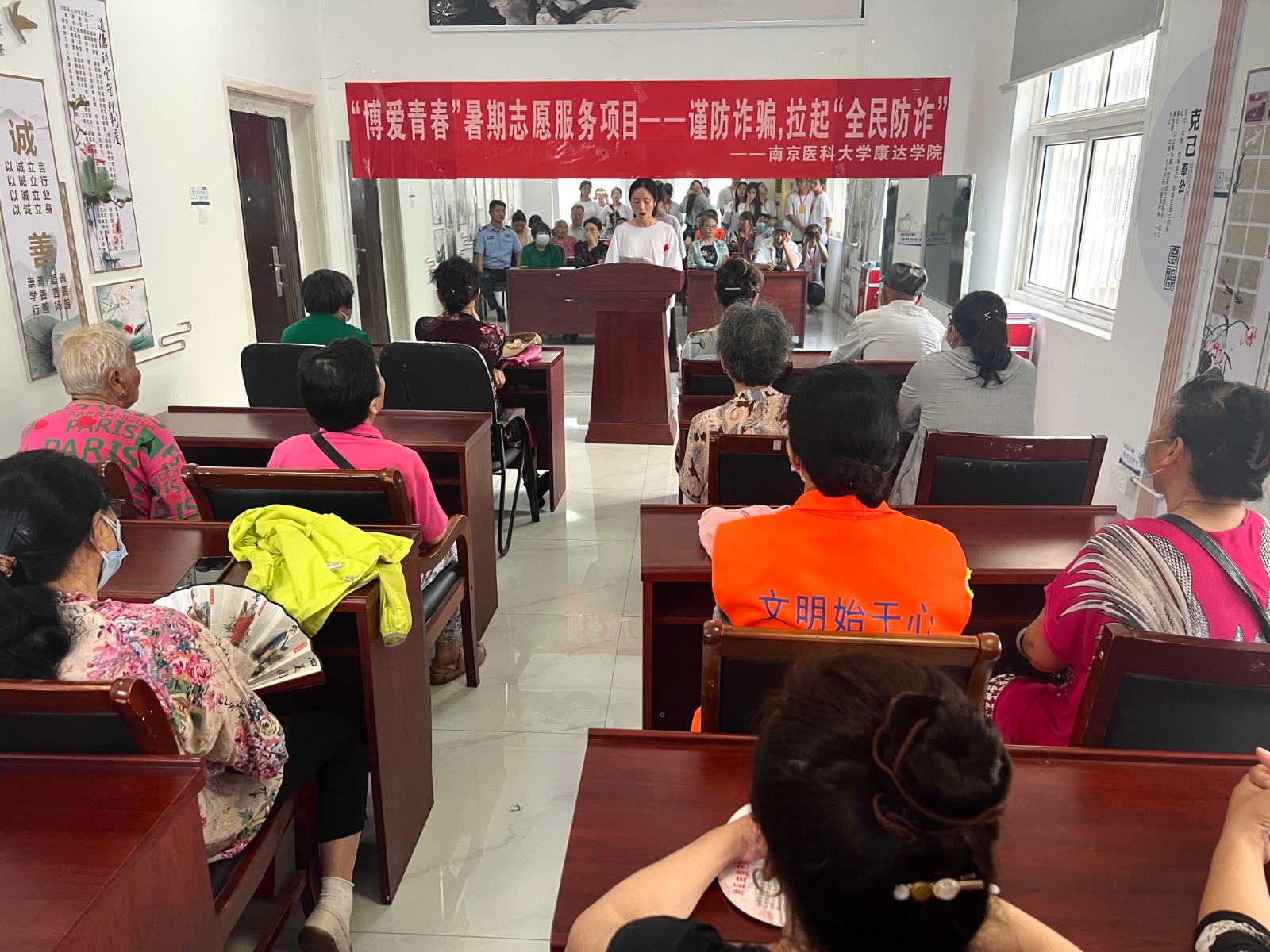 为进一步推进智慧助老工作,切实帮助老年群体提高法治意识和防骗识骗能力,提高老人的归属感、幸福感、获得感。6月29日,南京医科大学康达学院红十字会志愿者于新南街道新龙社区开展“谨防诈骗,拉起‘全民防诈’警戒线”博爱青春暑期社会实践活动之防诈宣讲会。新南街道新龙社区书记、主任闫晓丽,新南派出所辅警李彩霞及居民齐聚居委会会议室,现场座无虚席。