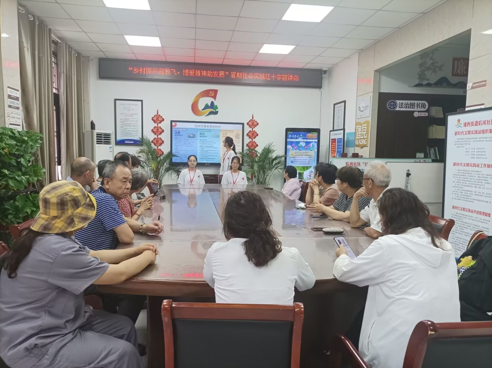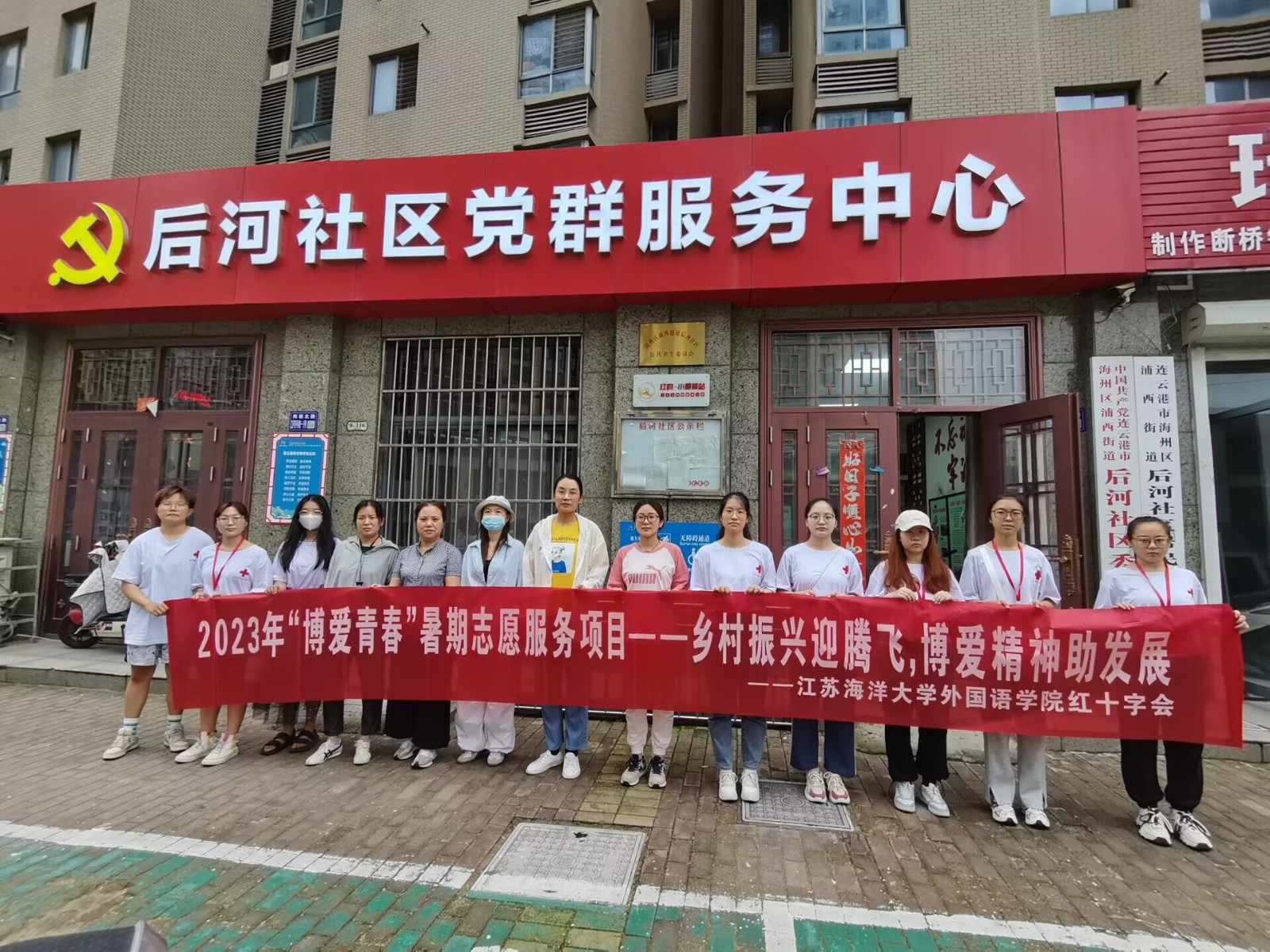 繁花似锦,绿荫如海,槐花香熏陶着六月的大地。为推动新时代志愿服务项目化、多样化、品牌化,坚定理想信念,进一步落实学习红十字精神,6月29日下午,参加本次“乡村振兴迎腾飞,博爱精神助发展”暑期社会实践的六位外国语学院红十字会的红十字志愿者来到了连云港市海州区后河社区党群服务中心,为社区的居民开展红十字卫生知识的宣讲活动。