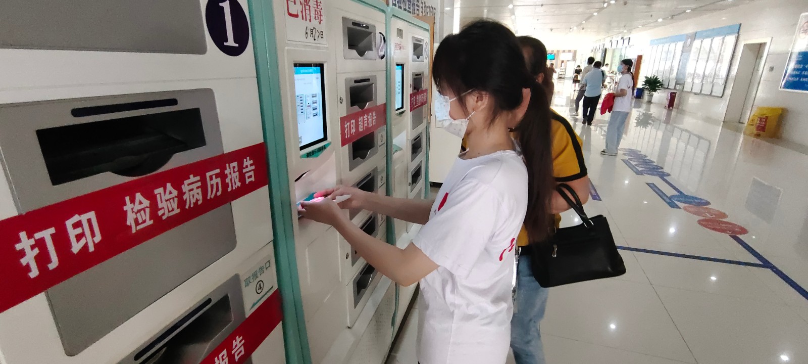 到达医院后,在负责人的安排下,红十字志愿者在医院自助挂号机、报告打印机、取药签到处帮助一些不会操作的患者,确保他们可以顺利就医,同时为一些不清楚医院科室分布的患者指明楼层和具体方位。不少独自来医院就诊的老年患者,在志愿者的帮助下解决了不会操作智能仪器的问题,对志愿者的工作表示感谢和赞赏。在工作间隙,志愿者们还向群众宣传防艾知识,并获得医护人员的称赞。