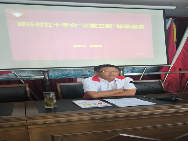 宣讲现场,镇红十字会秘书长吉奇文以生动的语言,唐山、汶川大地震救援等真实案例向学生和家长讲解了什么是红十字会、红十字会的起源和发展,围绕“三救三献”讲解了地震避险、急救包扎、雷暴天气注意事项等知识。志愿者们向学生和家长发放红十字会知识宣传折页40余份。