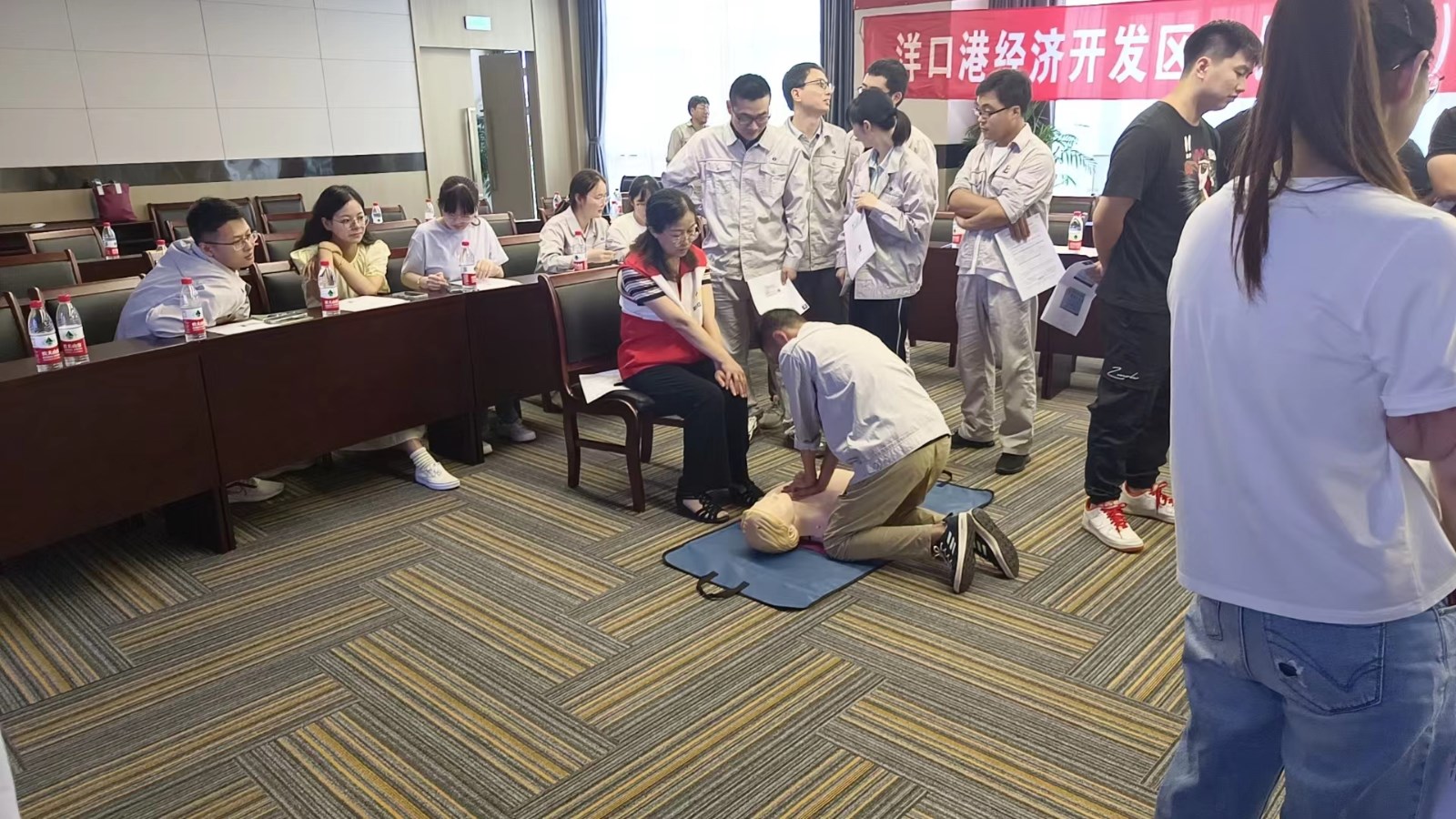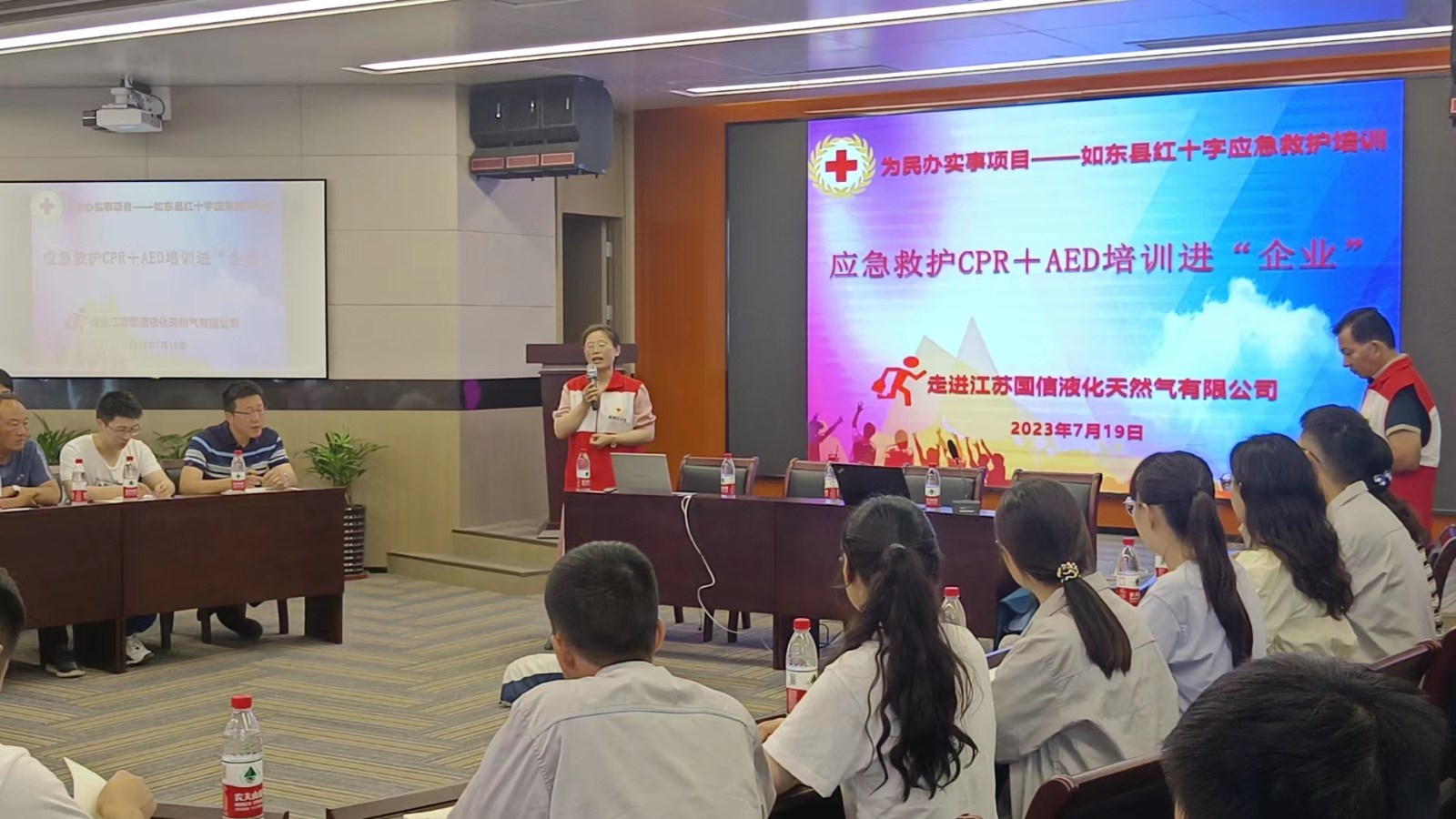 7月19日,县红十字会、洋口港经济开发区、长沙镇红十字会组织开展为民办实事——应急救护CPR+AED培训进企业。县红十字会周嫒主任主持了这次培训活动,李老师,何老师,徐老师对学员们重点讲解、演示心肺复苏和AED使用,并对学员们进行了理论、实践考核。江苏国信液化天然气有限公司、协鑫汇东等企业57人在洋口港能源中心参加了本次培训并通过考核。