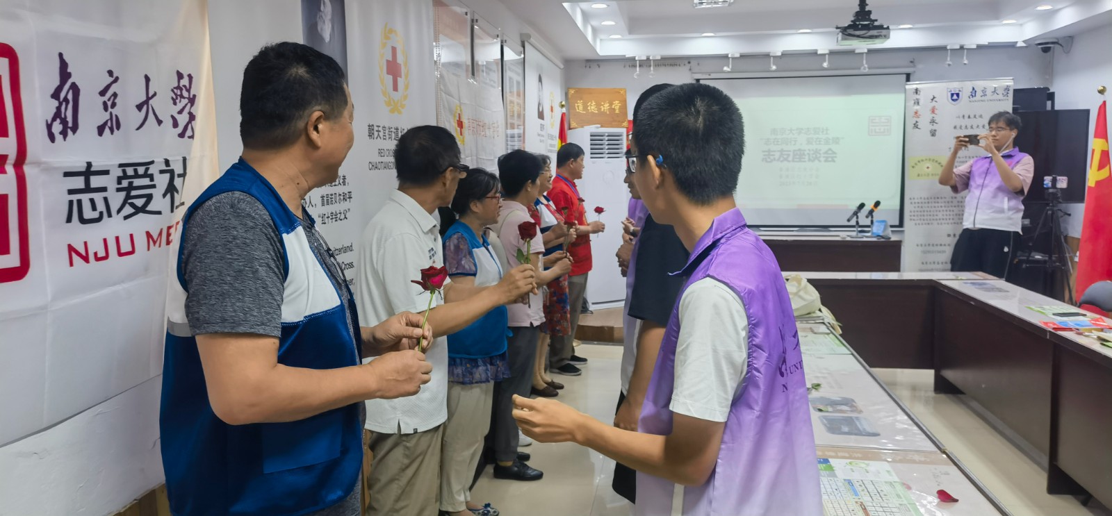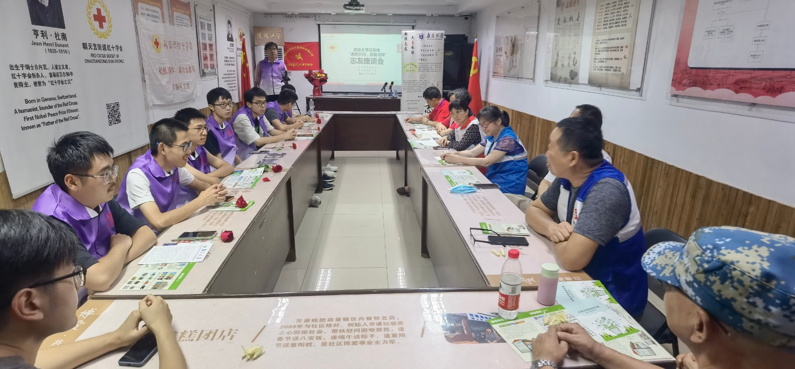 2023年7月20日,秦淮志友分会部分志友和南大志爱社的同学在秦淮区秣陵路101村社区党群服务中心会议室召开“志在同行、爱在金陵”互访活动。活动由秦淮区志友徐小平主持,区红会郭秘书长对此次活动表示欢迎和支持,介绍了秦淮区志友工作的现状,并对下一阶段工作提出希望。南大志爱社的石林泽同学介绍了学校成立了社团并开展活动等情况。紧接着志友李厚来老师、周老师、李福林老师、于儿老师、陈桂英老师及仇德华老师分别分享和介绍了自愿参加志友并志愿参加自我宣传、服务等各项工作的心理路程和感受。南大志爱社的负责人小金同学也谈了近年来的工作情况,活动在友好温馨的氛围中愉快结束,同学们向每位志友老师们献上一支鲜花表达敬意,更被“志友”老师们大舍、大爱精神所深深感动,纷纷表示要怀抱梦想,不负“志友”所望,以优异的成绩回馈老师们的无私奉献,奋力谱写让“志友”老师欣慰的青春答卷