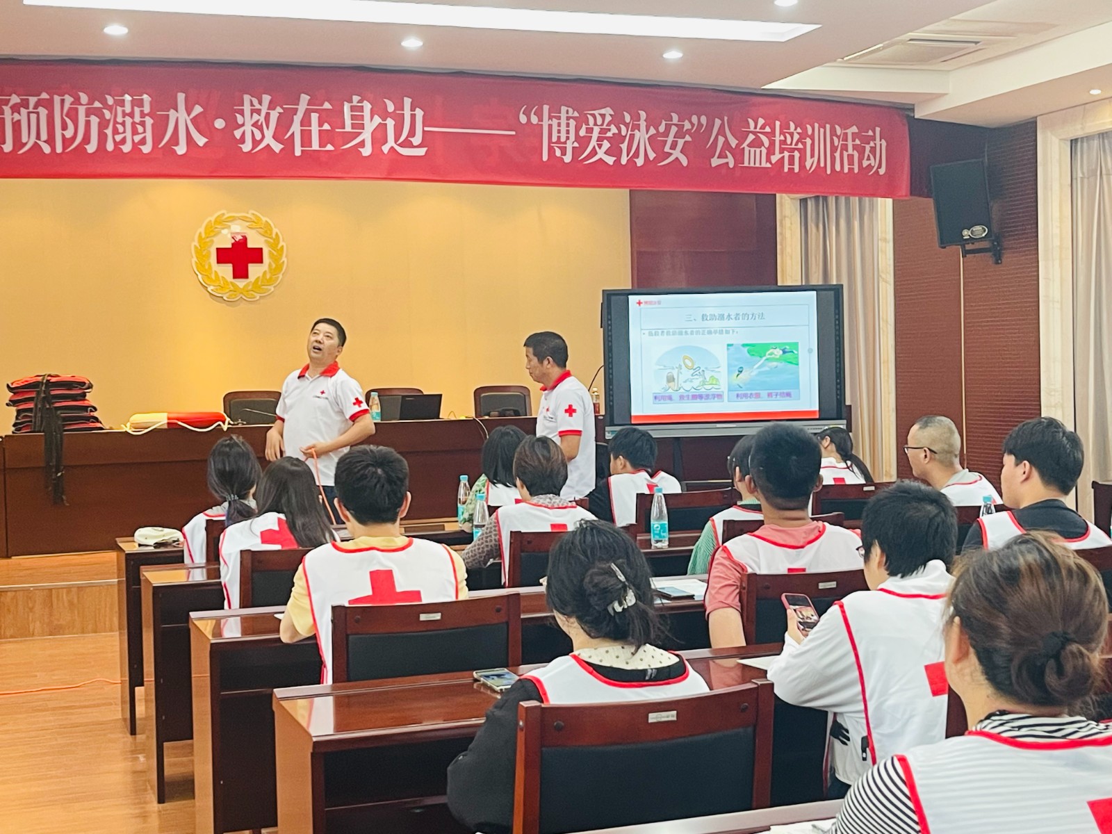 炎热的夏季是溺水悲剧多发时期,为有效防范溺水事故发生,进一步增强青少年防溺水安全意识,提高自救互救和逃生避险能力,7月15日下午,盐城市红十字会联合亭湖区红十字会举办“预防溺水 救在身边——博爱泳安”公益培训活动。