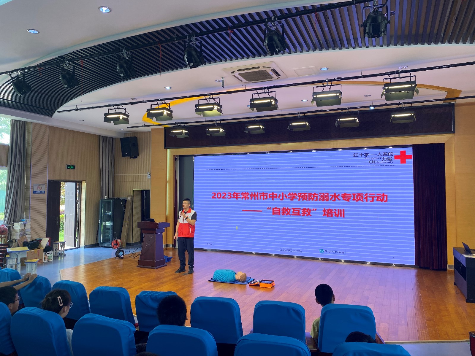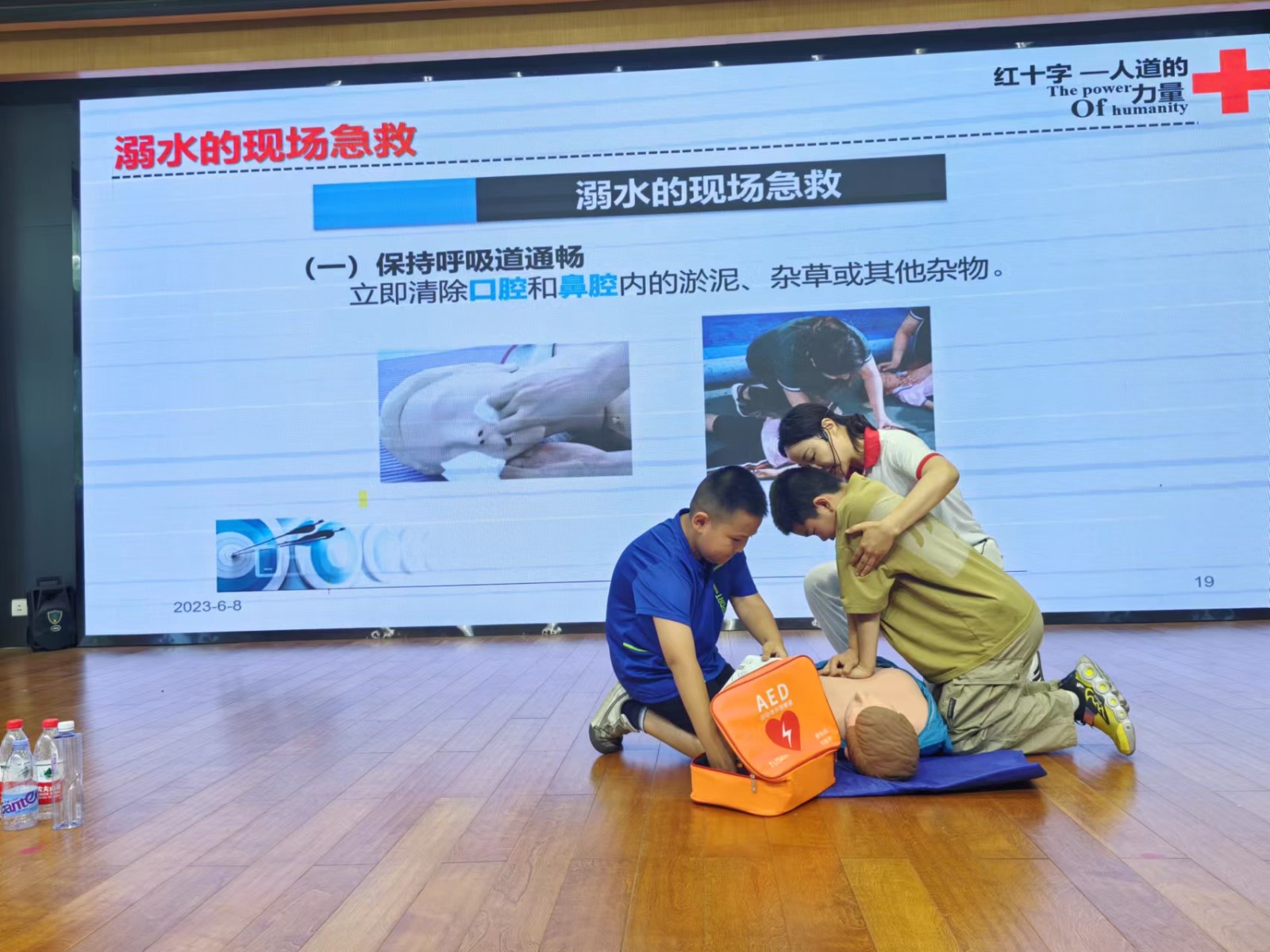 金坛区红十字会高度重视青少年学生群体的安全教育,联合区教育局对金坛区中小学、幼儿园的学生及老师开展防溺水安全知识培训讲座,在暑期到来之前,已为全区中小学开展防溺水培训12期,向学生及老师讲授如何预防溺水、溺水时如何自救、溺水者正确施救方法、心肺复苏术、自动体外除颤器AED的使用方法等安全救护知识,受益人数2800余人。在授课中现场开展体验活动,指引师生掌握人工呼吸、胸外心脏按压等急救基本技能操作。通过培训,让广大师生深刻认识到抢救及时、方法正确的重要性,增强安全防范意识和应急救护能力,促进安全校园创建工作。