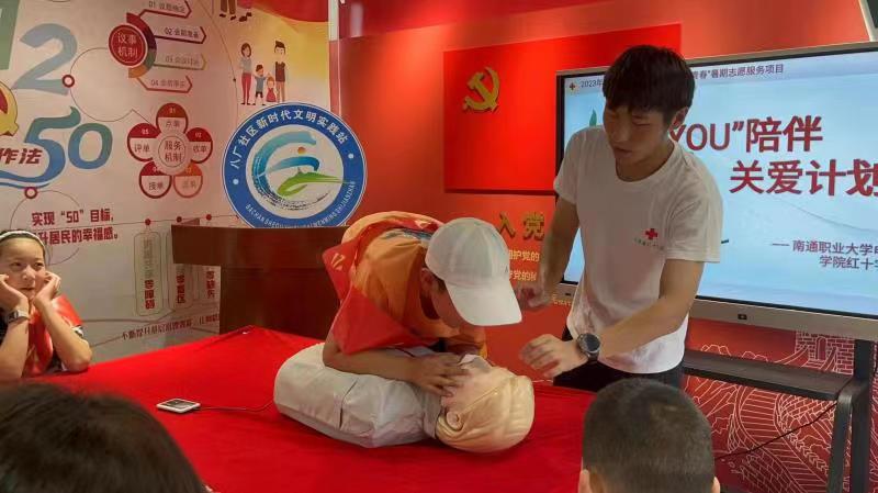 据悉,本次救护知识公益课堂进社区,是南通职大电子学院“YOU陪伴关爱计划”志愿服务项目系列活动之一,作为江苏省高校红十字会“博爱青春”暑期志愿服务省级支持项目,下一阶段,“YOU陪伴关爱计划”项目团队将持续以“陪伴”为主题,走进医院、基层社区,开展“新业态”陪伴行业社会调研,通过就诊陪诊、亲子陪伴、情绪陪伴等志愿服务活动,将陪伴视角辐射到“就医患者”“留守儿童”“流动花朵”等新群体,积极打造志愿服务品牌项目,扩大影响力、提升贡献度。