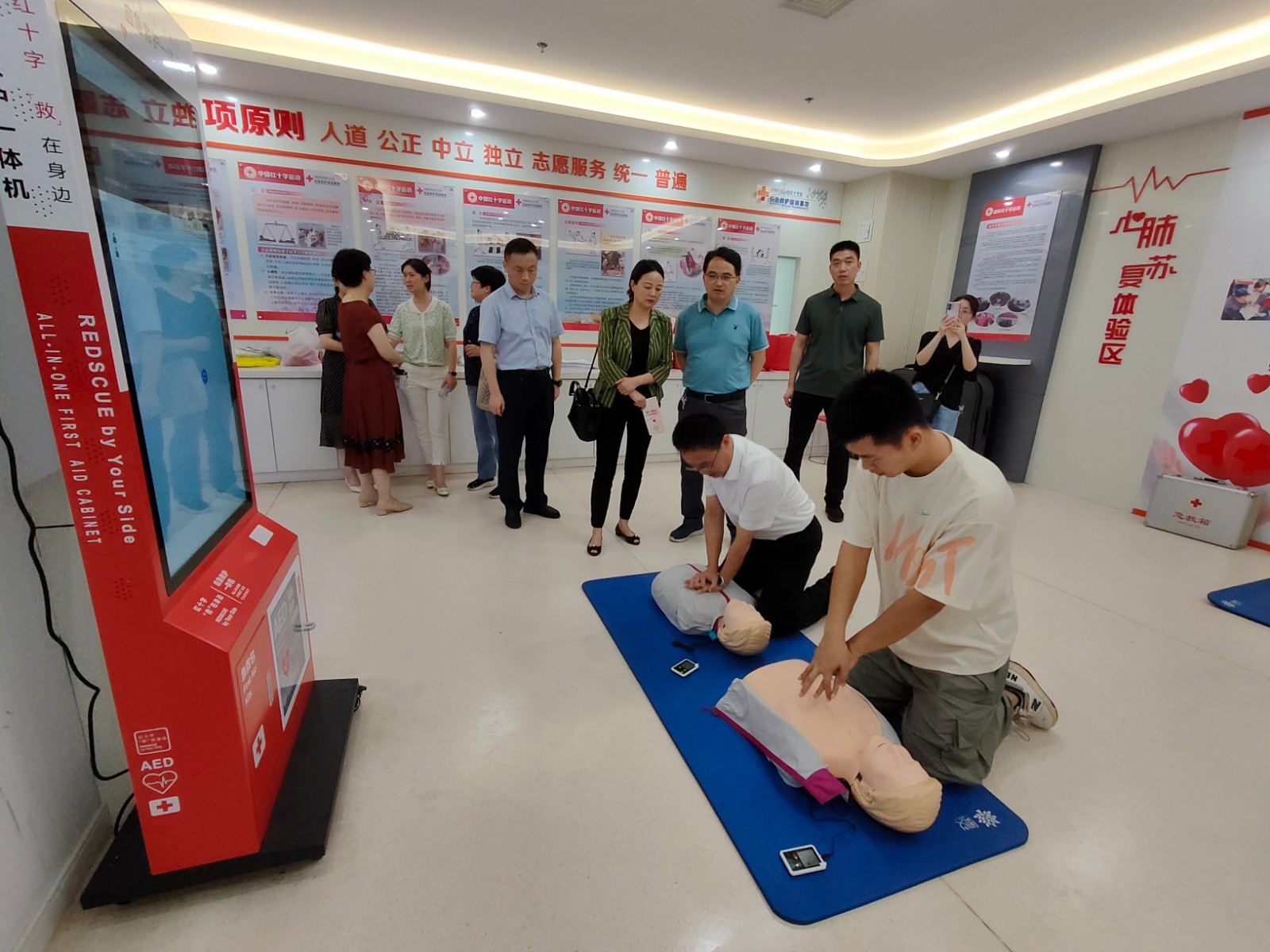 二是走在前、做示范,要坚持“民生为重”扬优势,助力健康无锡建设。强化应急救援体系建设。立足“高水准尖刀队伍”目标要求看,加大救援装备配置力度,常态化开展应急救援训练,组织救援队伍与“博爱家园”结对共建,有序开展防灾避险“三进”活动和“博爱泳安”公益项目,为保护人民群众的生命财产安全奠定坚实基础。主动服务健康无锡建设。深入实施市政府为民办实事项目“公益性应急救护培训+公共场所AED配置”,持续推进急救知识技能向重点行业和特殊群体延伸覆盖,拓展AED地图覆盖面,助力健康无锡建设。推进生命关爱工程建设。抓好无偿献血志愿服务队建设,依法依规推进造血干细胞和人体器官捐献动员工作,依托新媒体技术讲好捐赠者大爱感动故事,营造尊重生命、关爱生命的浓厚氛围。