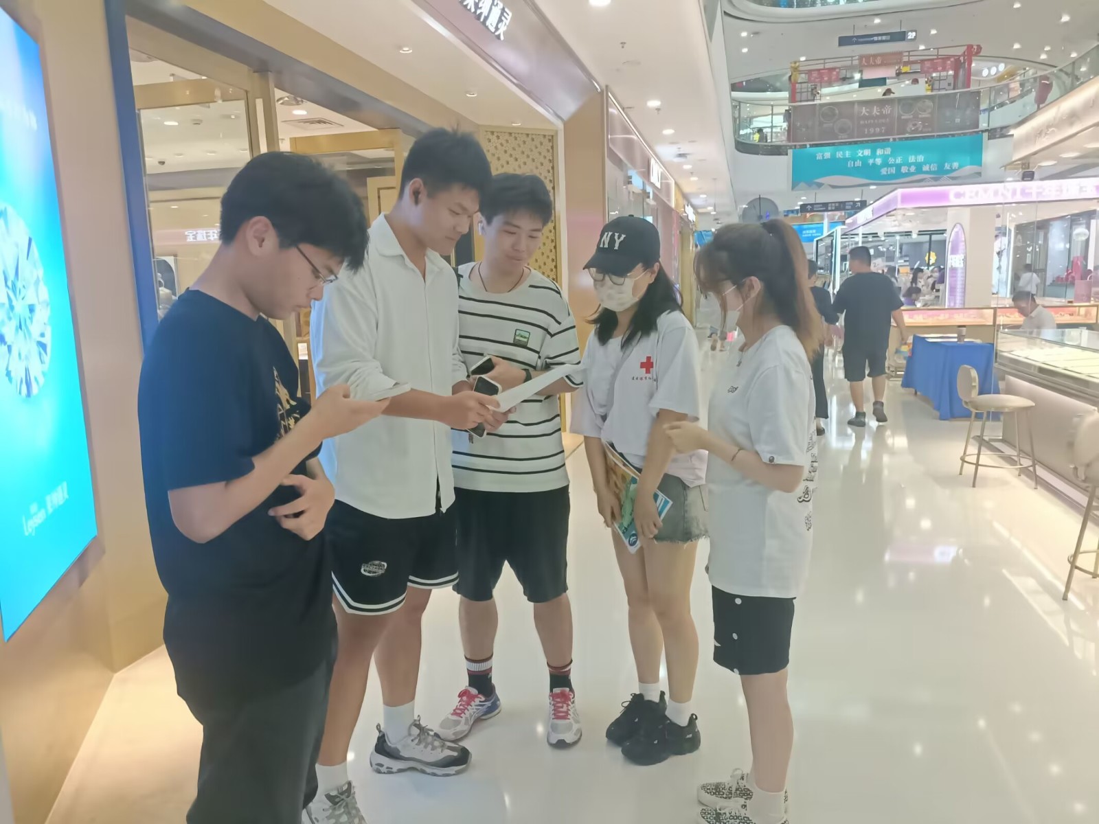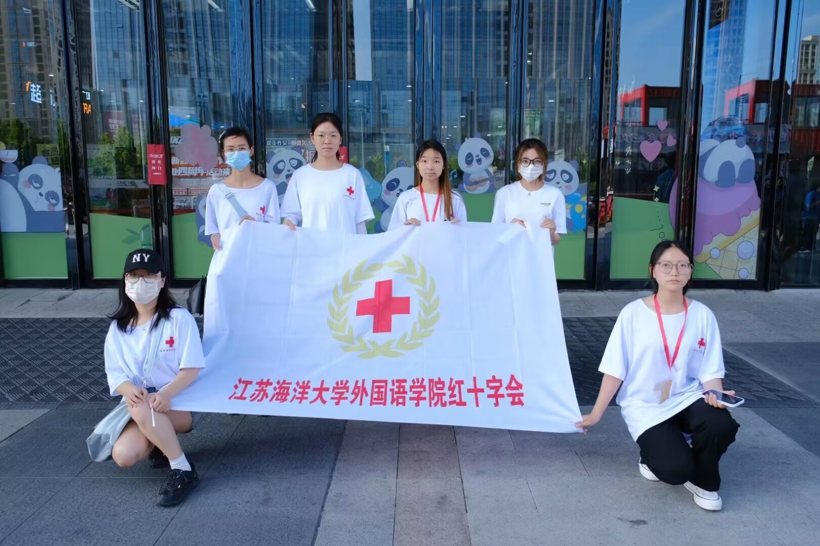 红十字不仅是一种精神,更是一面旗帜,跨越国界、种族、信仰,引领着世界范围内的人道主义活动。为使新时代青年进一步了解红十字会,清楚红十字会存在的意义,进一步宣扬“人道,博爱,奉献”“红星闪耀”的氛围,2023年7月1日下午,参加本次“乡村振兴迎腾飞,博爱精神助发展”暑期社会实践的外国语学院的红十字志愿者来到了连云港市万达广场进行了红十字宣传。
