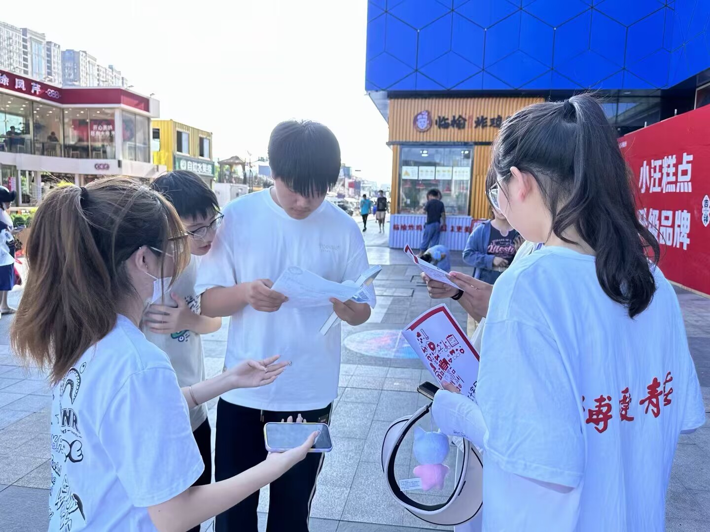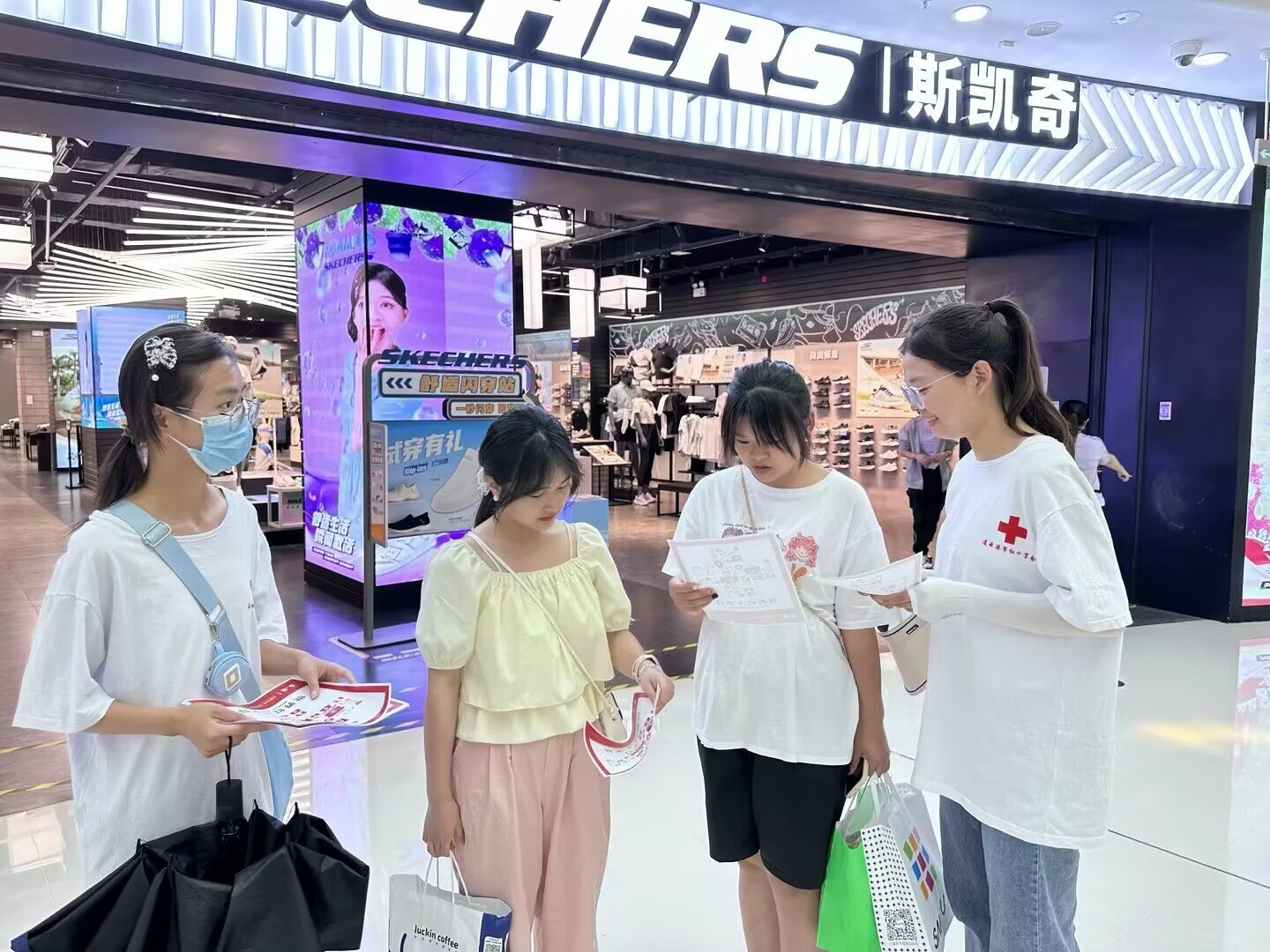 下午4时,红十字志愿者们到达万达广场,通过发放海报的方式面对面向群众普及知识,对当地群众进行卫生知识和乡村振兴知识的讲解宣传,部分受宣传在校青年,还能与学生队员开展讨论,探讨当代学生对于乡村振兴的贡献意义。除此之外,成员们用通俗易懂的解说宣讲知识,通过发放100余份海报,让群众更为深刻地认识到,红十字是一种精神,更是一面旗帜,跨越国界、种族、信仰,引领着世界范围内的人道主义运动。