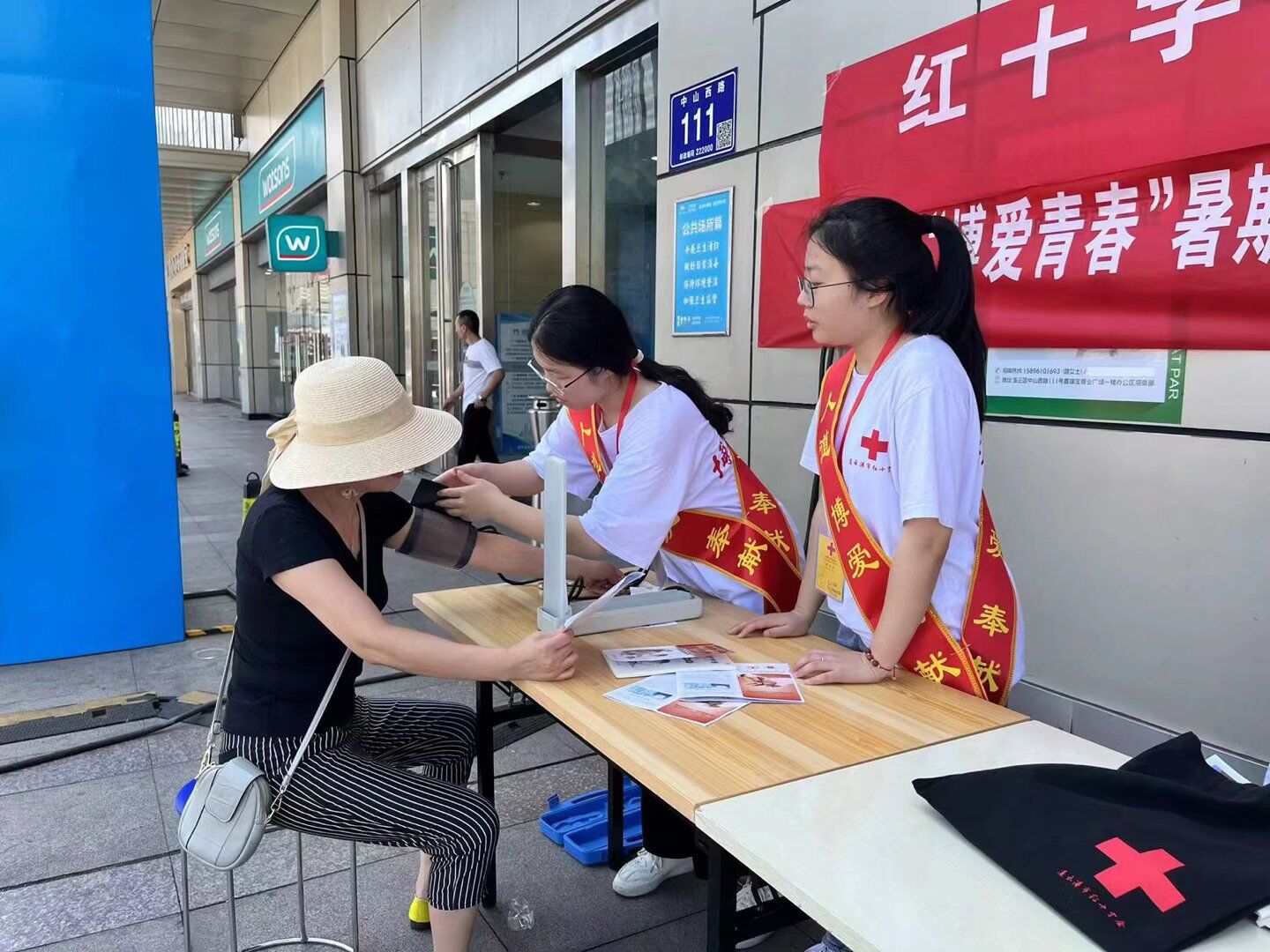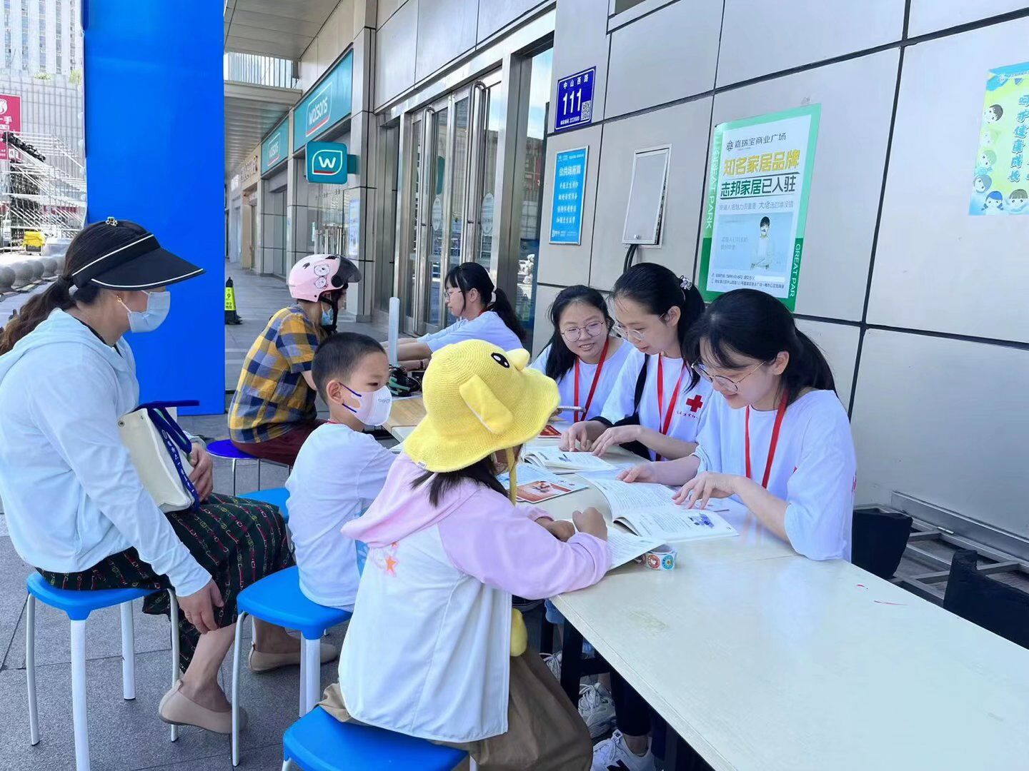在7月1号的上午我们来到了连云区嘉瑞宝广场为当地的群众讲解了器官捐献的流程和相关知识,并为群众开展了免费测量血压的活动,在听到当地的居民对我们红十字志愿者的一声声感谢,我们更加坚定了自己的医学信仰。