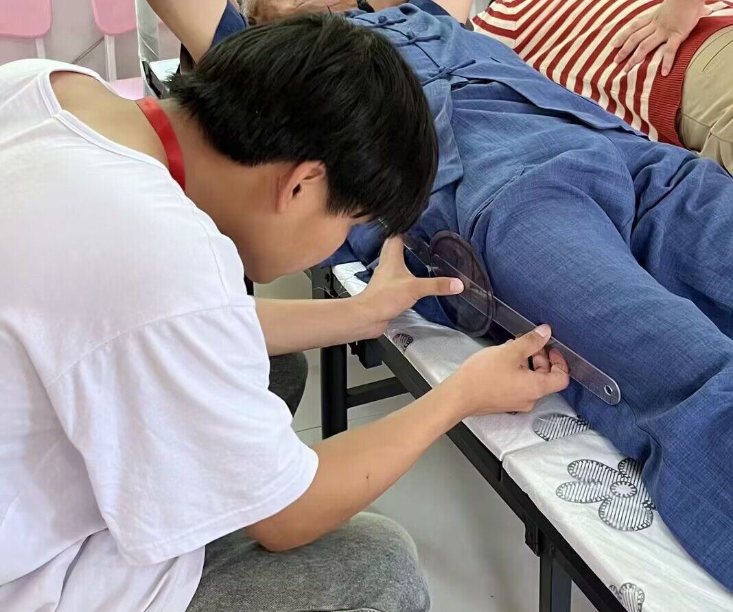 与进乡村志愿活中,志愿者发挥康复专业特长,在乡村服务中增加了关节活动度的测量,并对关节活动受限的村民采用松动术以缓解身体局部疼痛,旨在切实减轻农民因长期播种施肥、大幅劳作而产生的身体负担。与此同时,志愿者将心肺复苏、海姆利克急救知识教授于村民,着力增强村民自救防范意识。