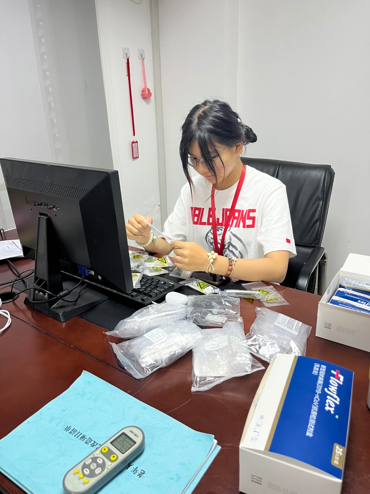此外,红十字志愿者们还进行了抗原试剂的分装工作。他们认真遵循操作规程,将试剂分装到小瓶中,确保每个瓶子的质量和准确性。这项工作的重要性在于,抗原试剂是疫情防控中必不可少的工具,通过志愿者们的努力,福利院能够及时获得充足的试剂供应,为老人和儿童提供更安全的生活环境。