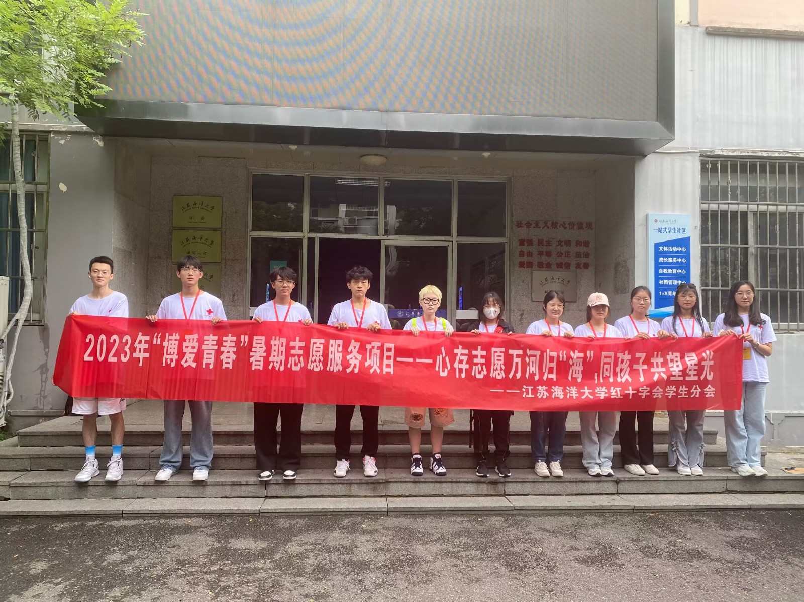 7月3日下午,江苏海洋大学红十字会学生分会在苍梧校区团委会议室成功举办“心存志愿万河归‘海’,同孩子共望星光” 市级“博爱青春”暑期志愿服务出征仪式。团队指导老师黄媛、14名团队成员参加此次仪式。