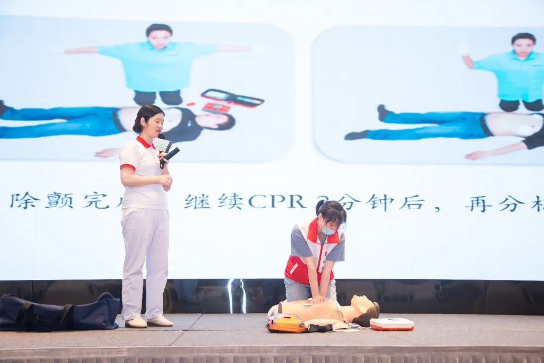 培训老师针对暑期预防溺水的重要性,将防溺水的自救互救措施与现代应急救护的新概念相结合,讲授CPR的实施、AED的使用、气道异物梗阻的急救措施等知识,并现场模拟演练心肺复苏等溺水救援技能。