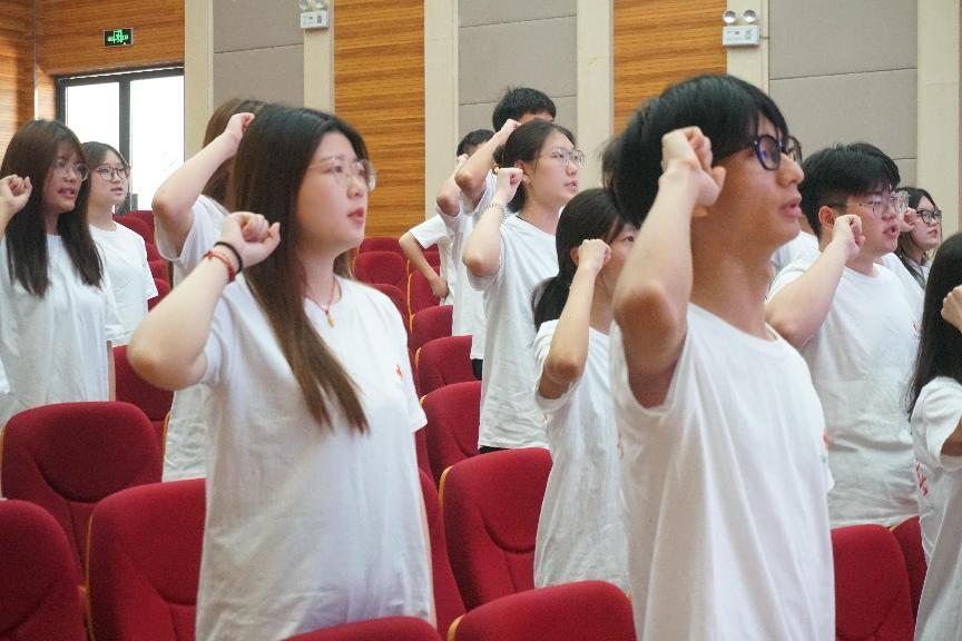 志愿者们面对誓词,郑重地举起右拳,庄严宣誓,现场铿锵有力的宣誓声,是大家坚定决心的有力体现。