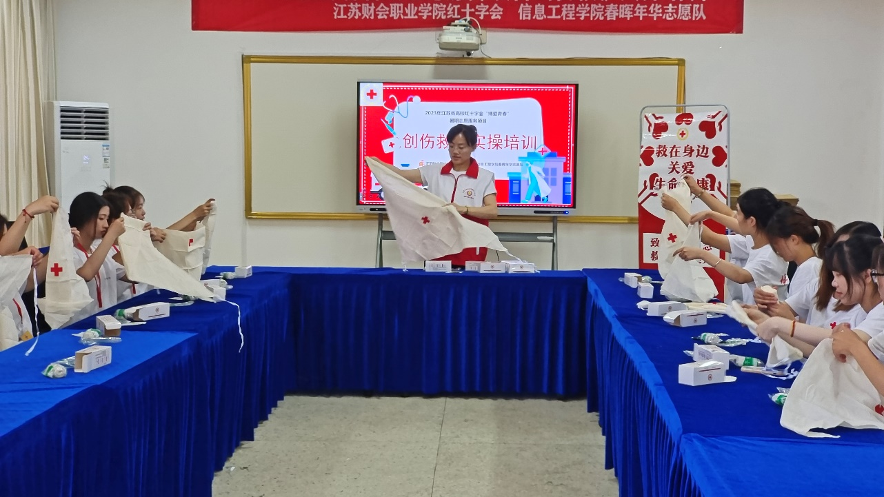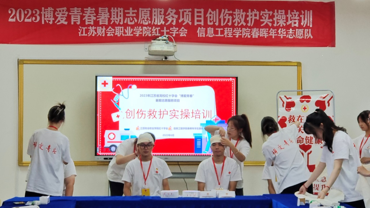 为进一步提升“博爱青春”暑期志愿服务项目志愿者急救、自救技能和应对突发事件的处置能力,护航“博爱青春”暑期志愿服务项目顺利开展,6月29日下午,江苏财会职业学院红十字会在校行健楼510会议室开展志愿者创伤救护技能专题培训。