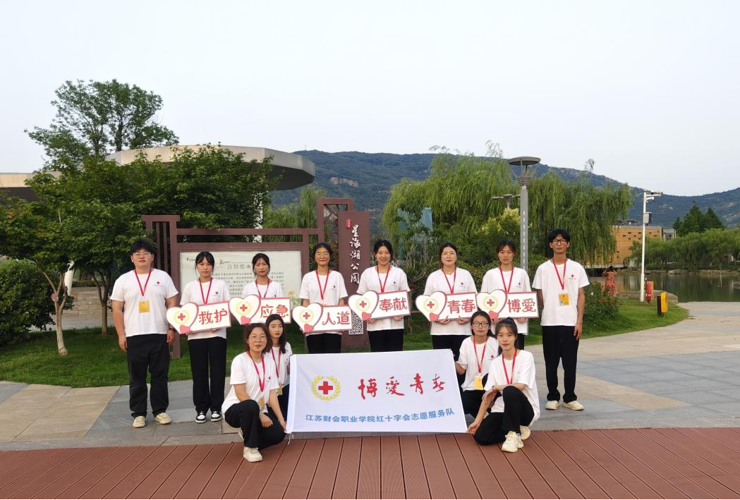 酷暑盛夏,骄阳似火,抵不过财院学子投身“博爱青春”暑期志愿服务的满腔热情。为更好地宣传“人道、博爱、奉献”红十字精神,契合今年江苏财会职业学院红十字“博爱青春”暑期志愿服务“救在身边,关爱生命健康,致力景区应急救护能力提升”的主题思想,7月4日,来自江苏财会职业学院信息工程学院学生党支部的志愿者们,身着统一的“博爱青春”主题文化衫,齐聚学校南门,开展“爱在“徒”中,“骑”乐无穷”公益活动。活动当天,项目指导老师信息工程学院党支部书记王晶将志愿者先锋队分为两组,分别为志愿者代表管梦楠带队的星海湖徒步组和石谷雨带队的大圣湖骑行组,通过徒步与骑行相结合,保证了活动开展的深度与广度。