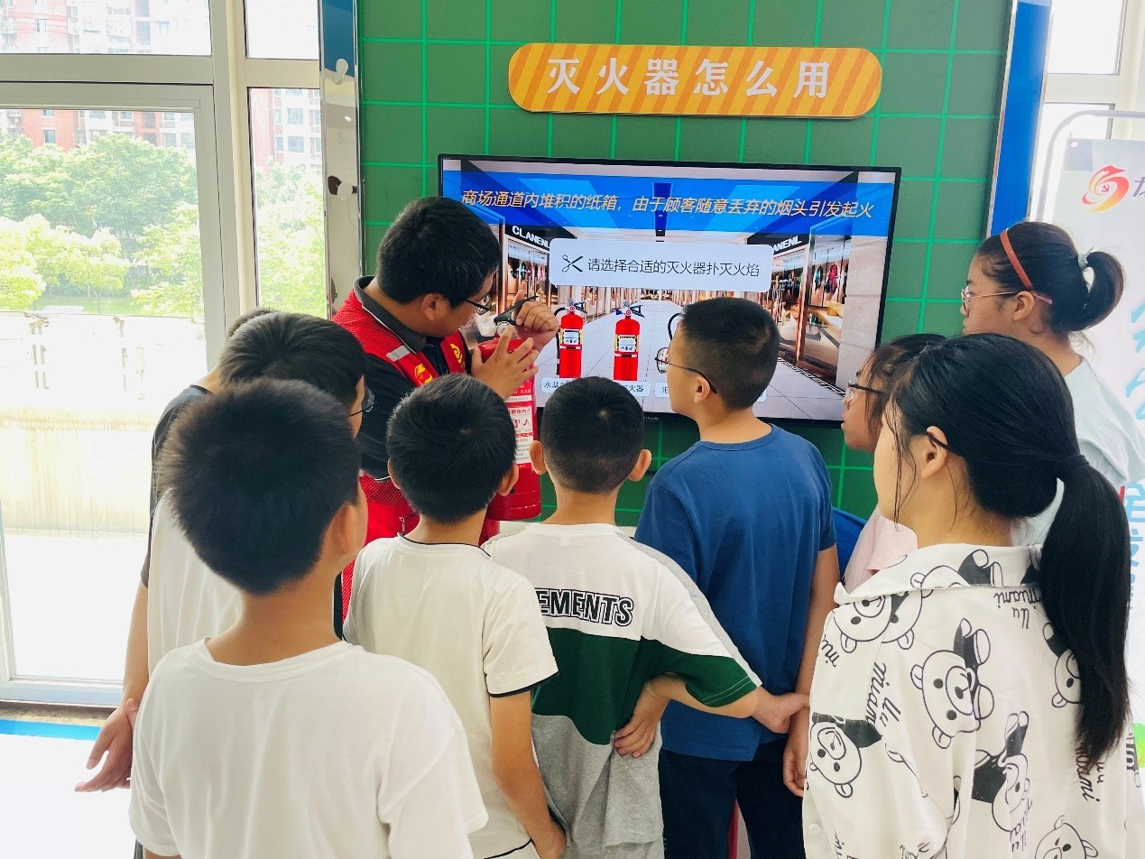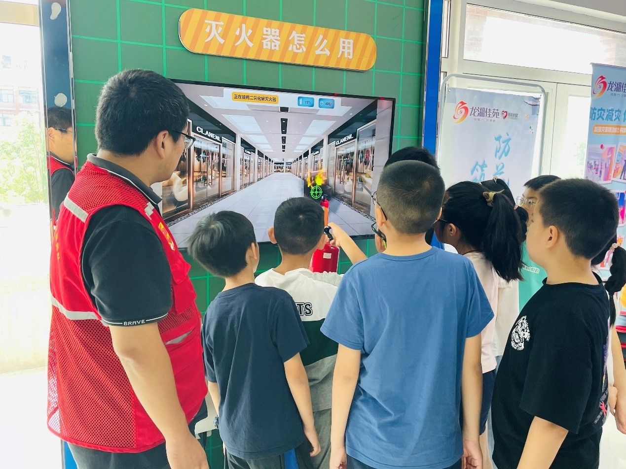 警钟长鸣,安全教育刻不容缓。同学们在社区退役军人的带领下来到防灾减灾科普馆,首先观看了防灾减灾的科普视频。在消防安全体验区,退役军人小周向在场同学、家长介绍了灭火器的种类,针对不同的场景,如何正确选取相应的灭火器,并通过社区的模拟灭火系统,选取不同的场景,让师生们现场操作、亲自感受、体会灭火器的灭火功效。在急救训练体验区,同学们体验智能心肺复苏系统,对“模拟人”实施心肺复苏操作。通过一系列集科学性、趣味性、教育性于一体的科普体验,提高了学生自我保护的潜力,为学生的暑期撑起了一把“平安伞”。