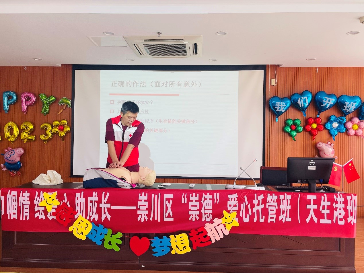 为提高青少年应对突发事件时的自救互救能力,过一个健康、安全、有意义的暑假,龙湖佳苑社区关工委联合南通市崇川区总工会、崇川区红十字会、天生港派出所举办暑期“护苗”安全知识培训活动,邻里志愿者、退役军人、社区民警为同学们带来了满满的干货知识。