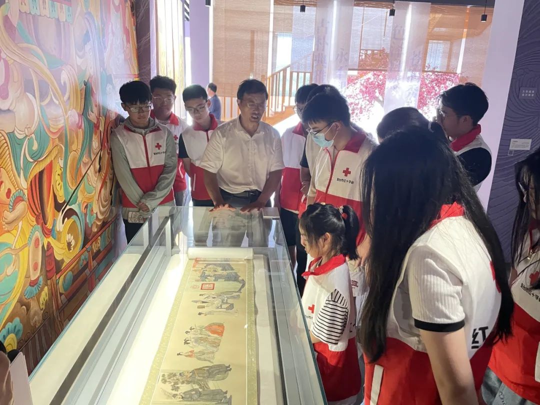 7月29日下午14点,在东台西溪风景区发绣展览馆内,由东台嘉丽发绣厂厂长、江苏省工艺美术大师、东台发绣省级非遗传承人陈伯余老师结合馆内展出的作品,为红十字志愿者们开展讲座。讲座内容包括发绣的起源、现状与未来发展前景,让志愿者们亲眼体悟到发绣之美,感受发绣精细、雅洁的神采,号召志愿者们关注非遗文化、保护传统精粹。