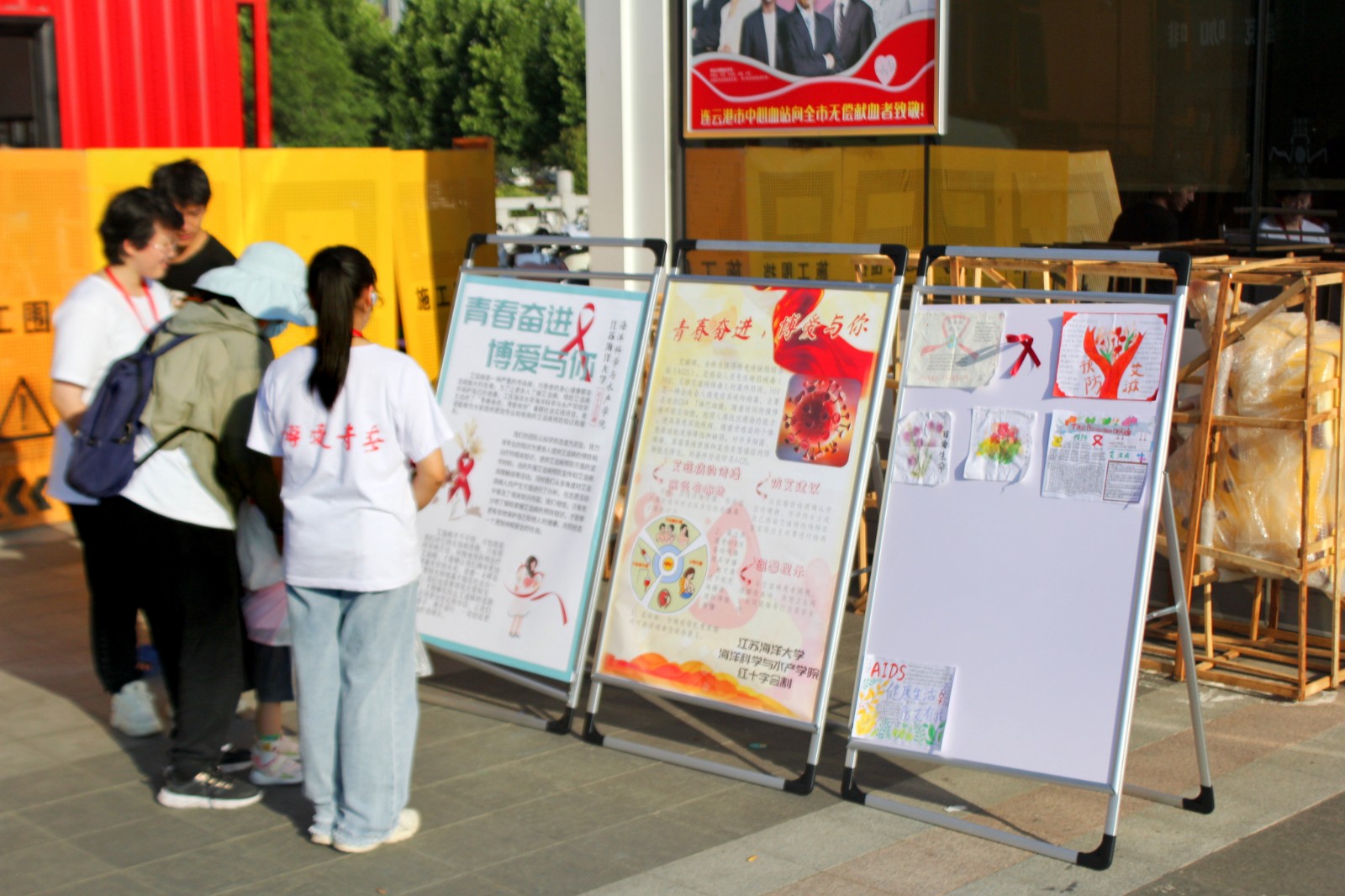 [连云港市]博爱青春:江苏海洋大学海洋科学与水产学院红十字会血站开展防艾知识宣传和参与无偿献血活动
