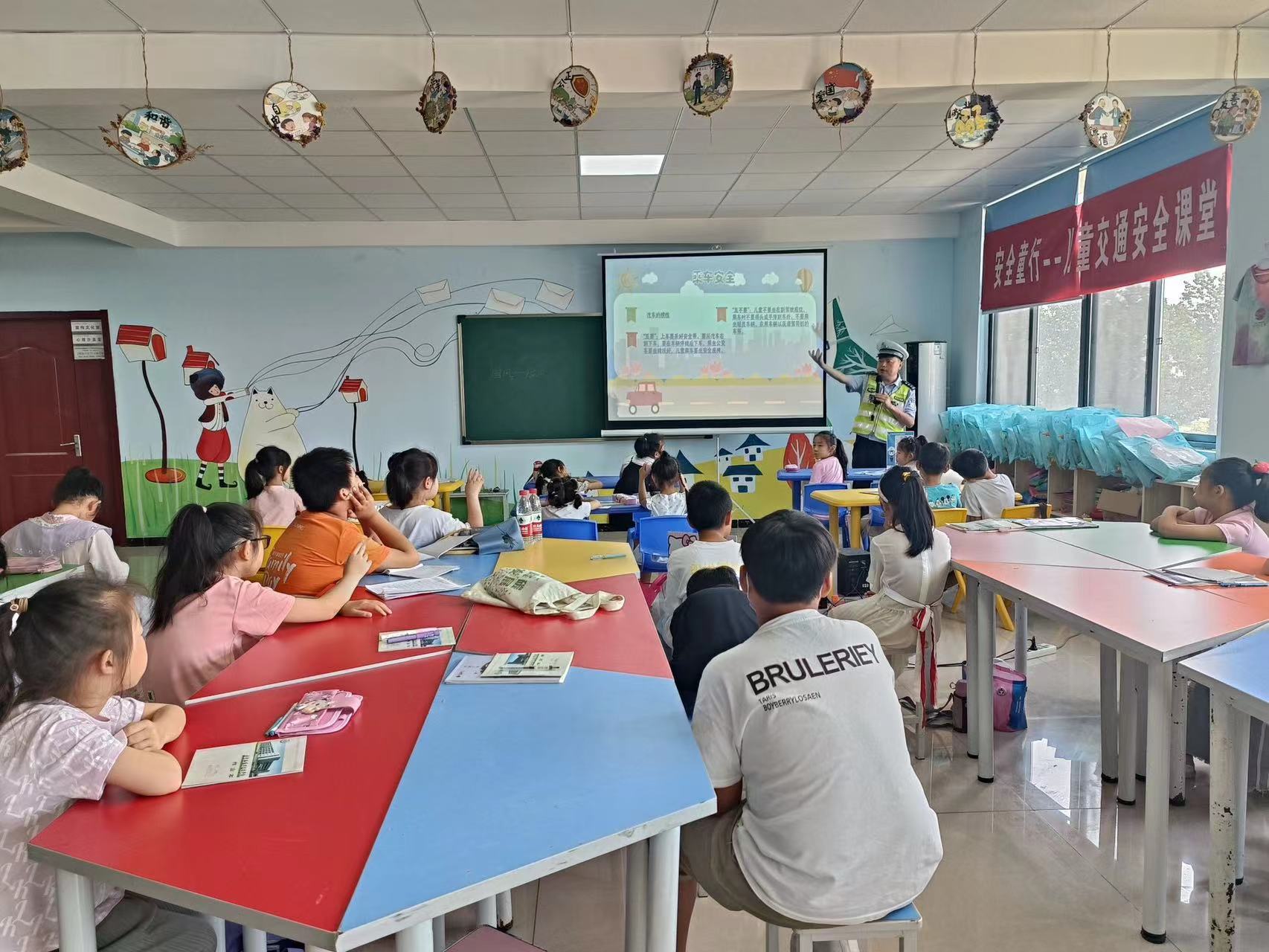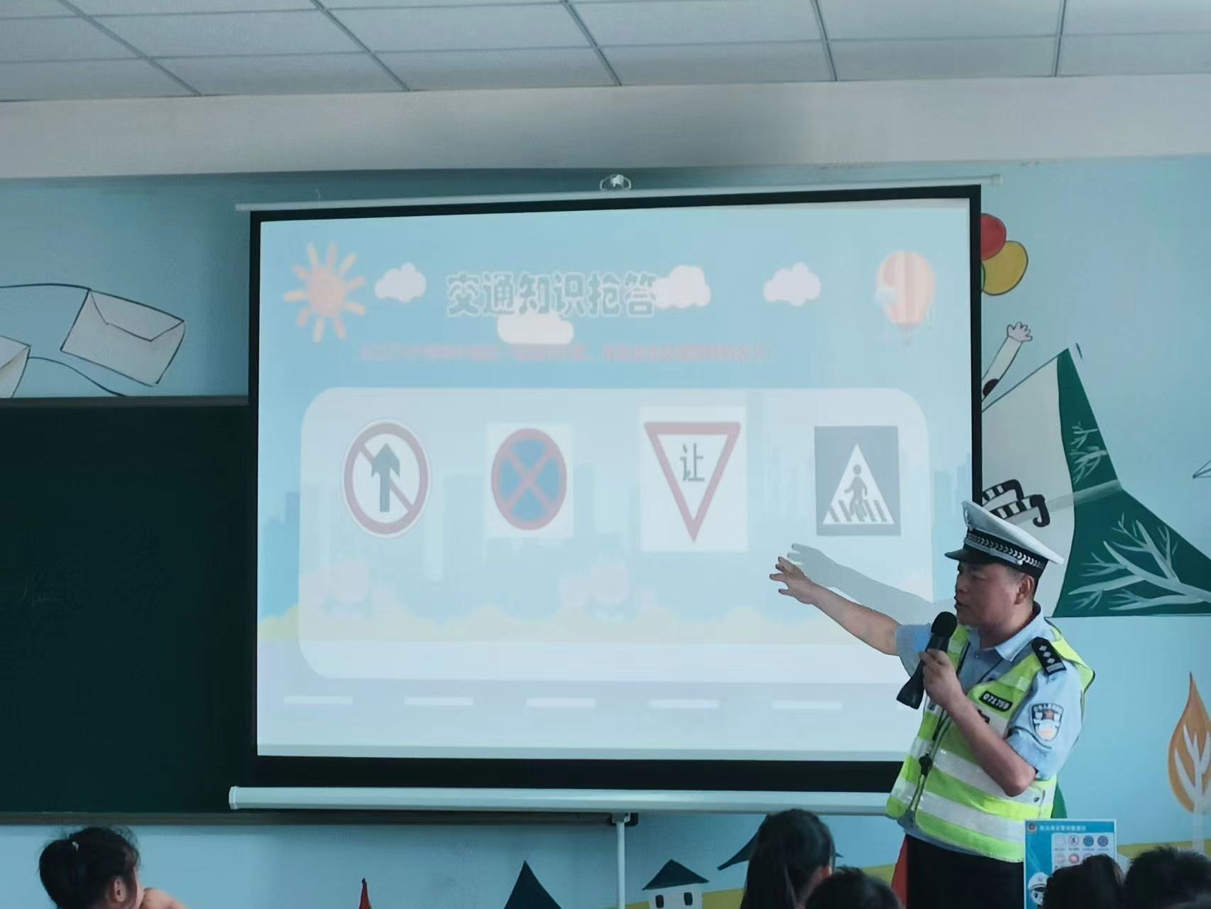 志愿者小老师就“防溺水安全、居家安全、交通安全、食品安全”四个板块展开教育。课堂以“拍、拍、拍拿放”小游戏拉开了序幕,充分调动起了小朋友们的积极性。接着志愿者小老师通过视频、图片等形式向孩子们讲解了防溺水、居家安全、食品安全、交通安全等知识。结合日常生活中的真实案例,深入浅出的向孩子们讲解了安全自护的重要性和面对系列安全事件时应该采取的措施。尤其在讲解交通安全时更是请来了丁警官向孩子们讲解相关知识,警官通过真实案例让孩子们直观生动地理解不遵守交通规则的危险性,提醒孩子们在生活中注意交通所带来的危险。同时,为加深孩子们对知识技能的熟悉掌握程度,丁警官还教会孩子们在遇到危险时如何进行呼救、如何拨打报警电话、如何辨别交通标志,以及通过手抄报等形式让学生们充分认识到了生命安全的重要性。最后,为了强化孩子们对安全知识的记忆和理解,志愿者小老师采用游戏互动、你问我答的方式,将讲授的知识穿插其中,激发了大家学习的学习兴趣,孩子们热情高涨,现场气氛热烈。课程结束后,大家围绕在志愿者小老师的身边,意犹未尽,不愿离去,继续分享着自己的体会和感受。
