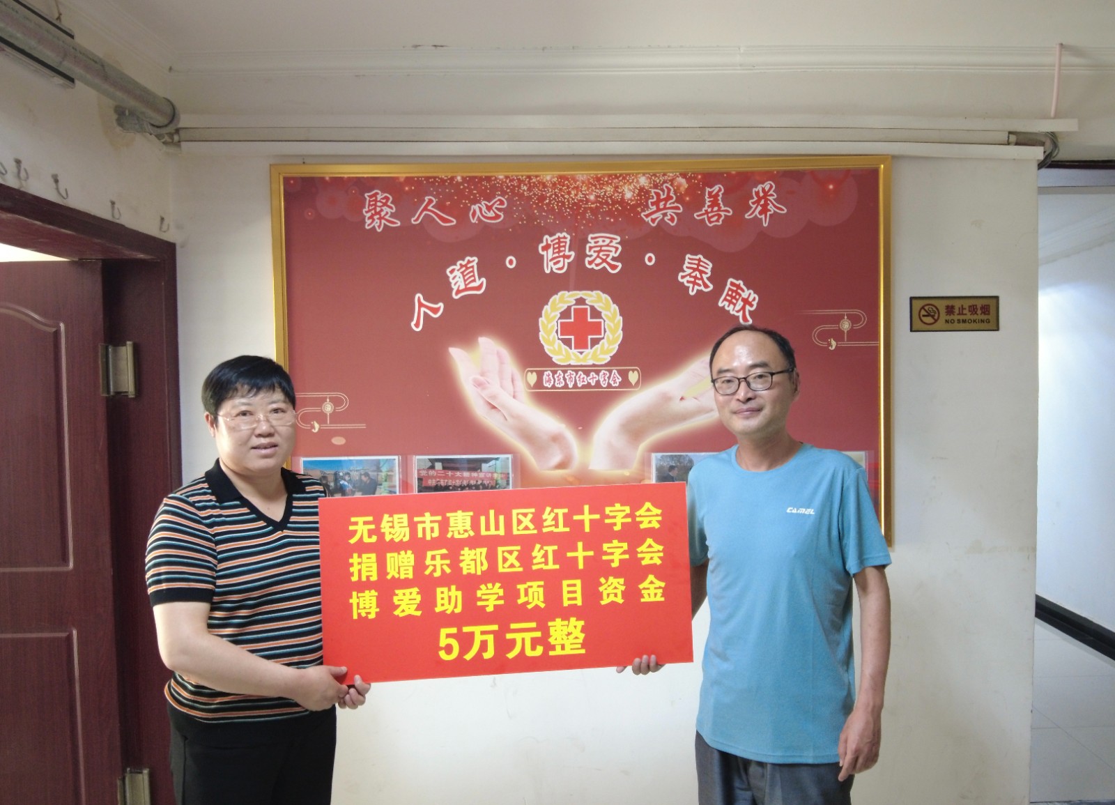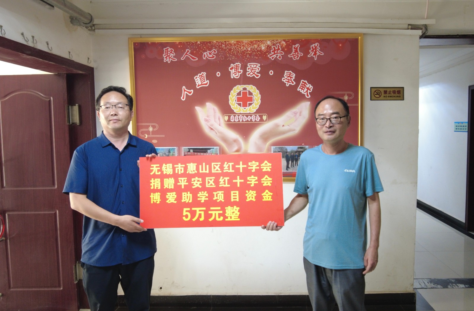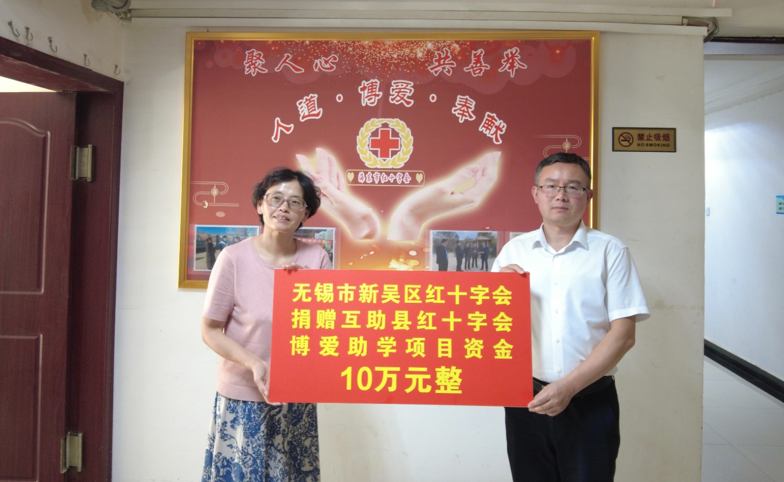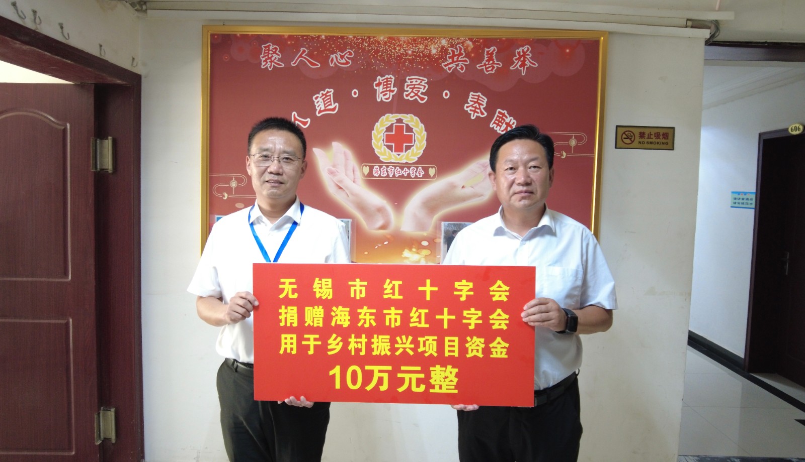 座谈会后,举行了捐赠仪式,无锡市红十字会向海东市红十字会捐赠资金10万元用于乡村振兴相关工作;惠山区红十字会向平安区红十字会、乐都区红十字会分别捐赠资金5万元,用于贫困大学生救助;滨湖区红十字会向民和县红十字会捐赠资金10万元用于博爱助医项目;新吴区红十字会向互助县红十字会捐赠资金10万元用于贫困大学生救助。