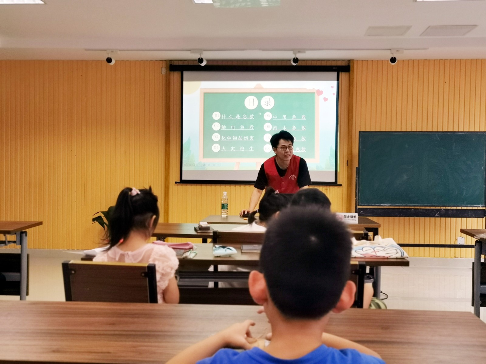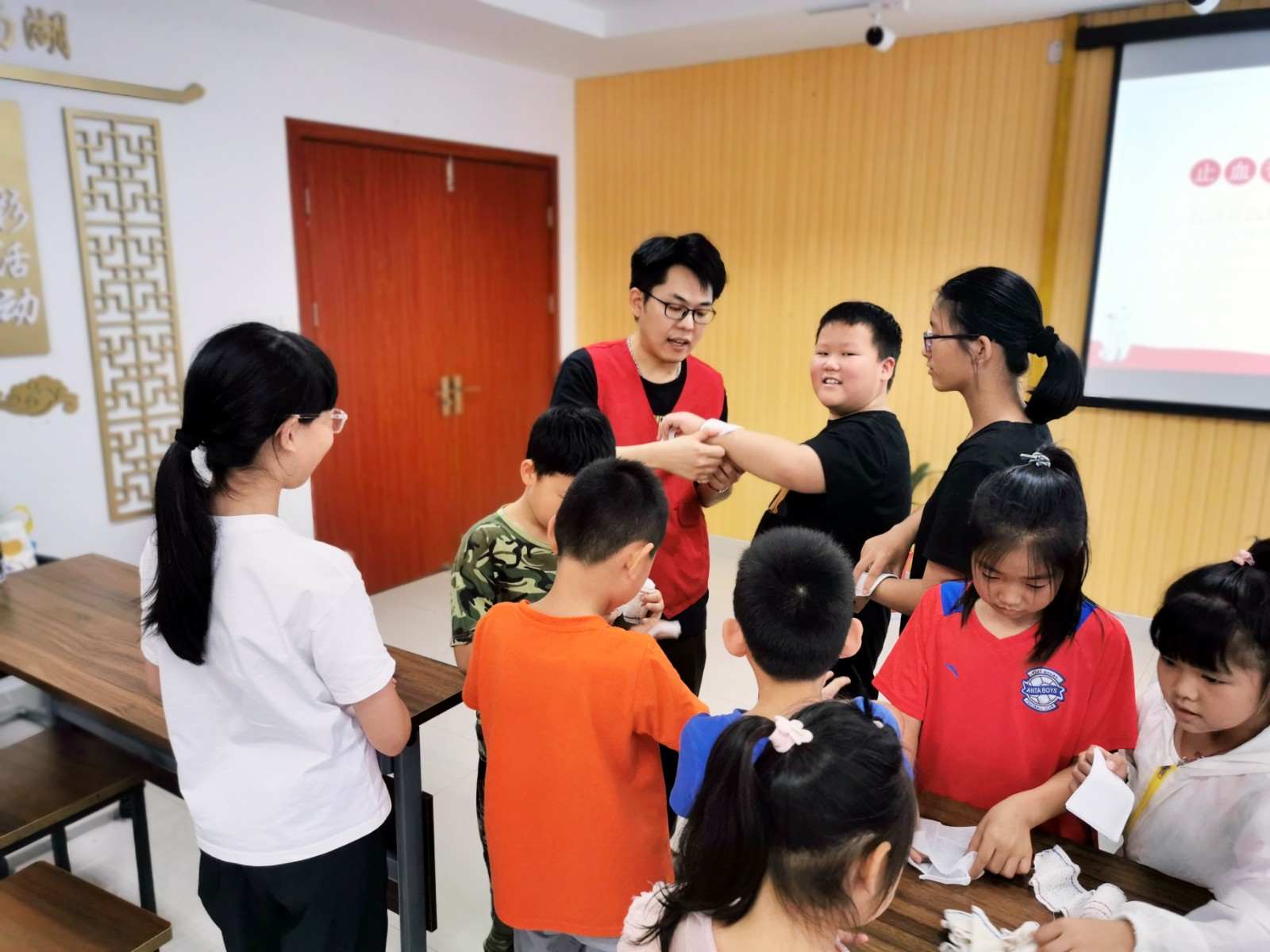 为提高少儿群体的自救互救能力,普及应急救护知识和技能,在意外事故现场能够进行有效救护,达到保障生命、及时有效拯救生命的目的,7月27日上午,常熟市尚湖镇红十字会在尚湖镇新时代文明实践所开展“七彩的夏日”暑期少儿急救培训活动,常熟市红十字会救护培训师刘骁为孩子们授课。