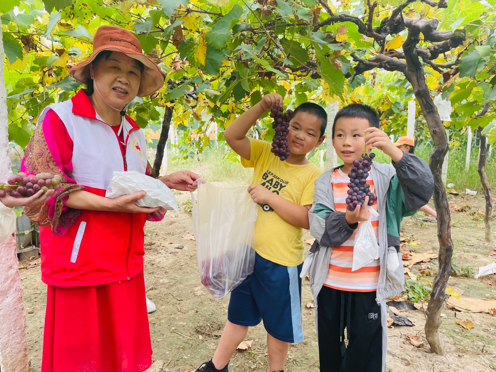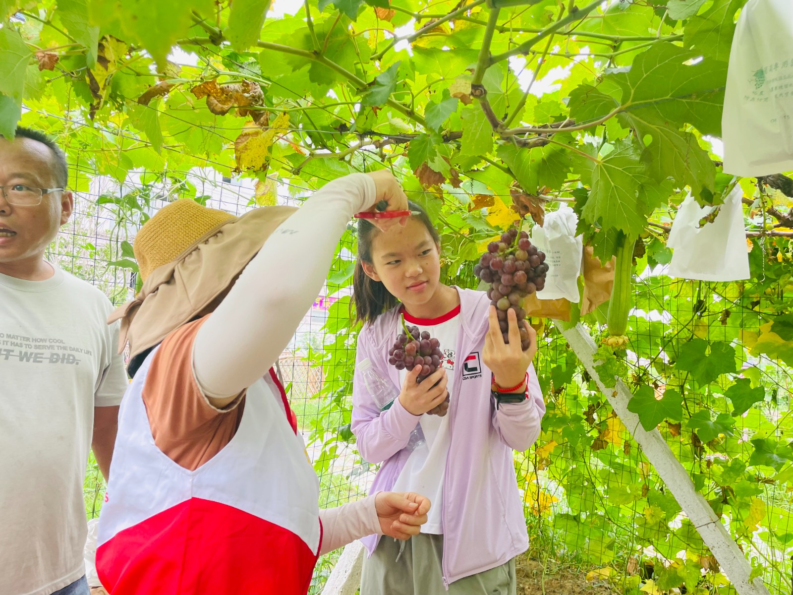 走进六龙运河农场,环境优越,农作物生长茂盛,是青少年体验劳动乐趣的绝佳去处。在确保环境安全的情况下,红十字志愿者们耐心指导学生们开始了采摘瓜果、葡萄等农作物的劳动实践活动。艳阳高照,面对着挂满藤上的葡萄串,他们一个个猛扎子钻了进去,瞄准长势良好的葡萄,快准狠地采摘下来。汗水顺着脸庞一滴滴流下来,大家看着左右手都抓满了葡萄和瓜果,开心的笑容浮现在他们脸上。