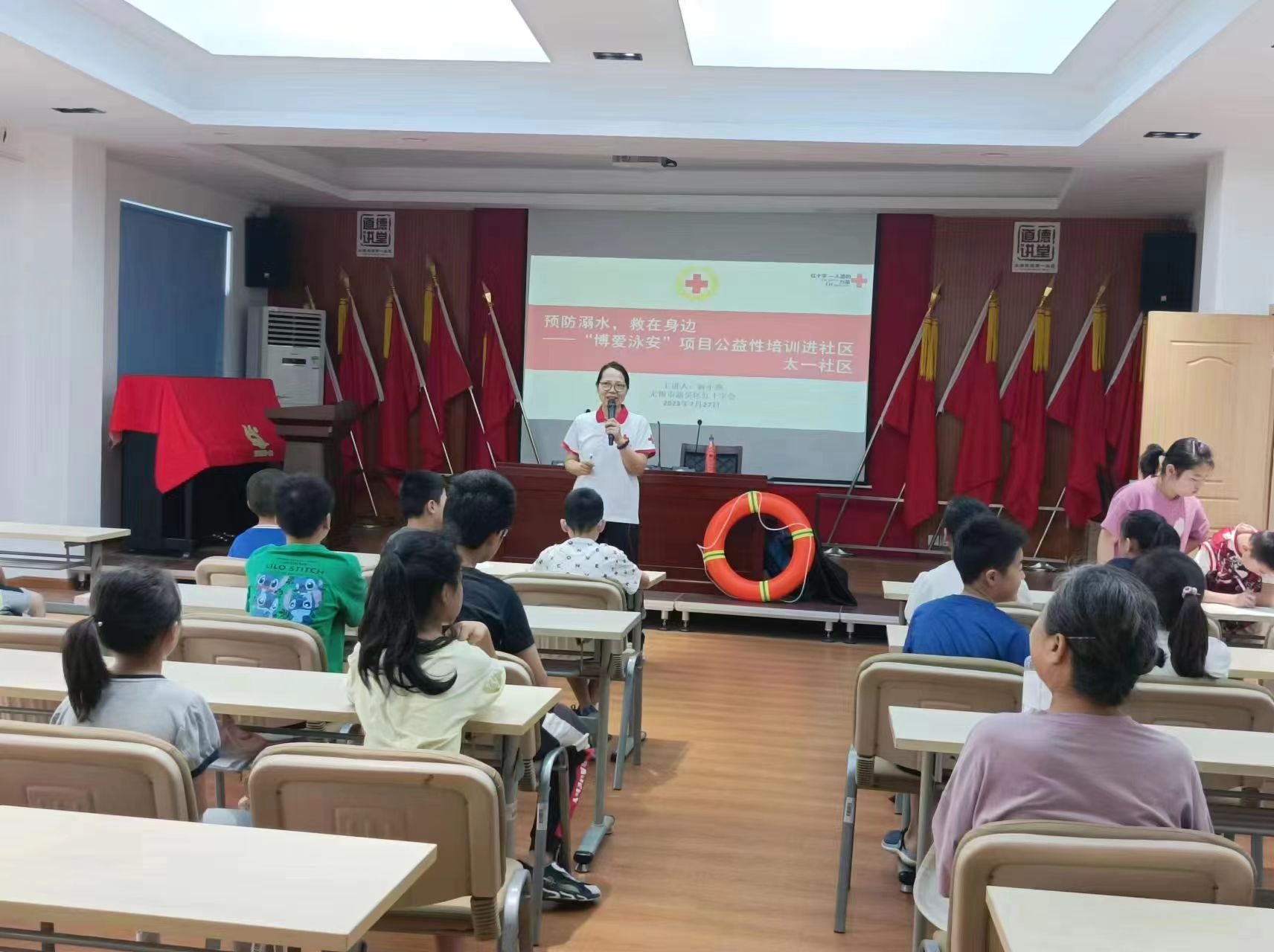 暑假是居民进行游泳等水上娱乐活动的高峰期,为增强辖区内青少年的安全防范和自我保护意识,7月27日上午,新吴区红十字会救护老师走进太湖花园第一社区,面向辖区青少年及家长开展了“预防溺水,救在身边——‘博爱泳安’公益项目培训进社区”防溺水安全知识讲座活动,20余名辖区学生参加了本次培训。