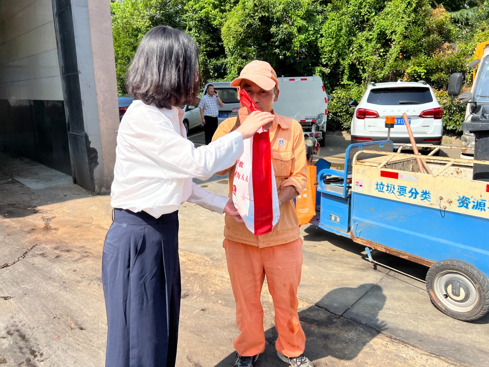活动中,慰问组为环卫工人送上防暑防护套装、盐汽水、毛巾等物品,提醒工人们做好防暑降温措施,保护好个人身体,合理安排作息时间。一句句亲切问候,一份份暖心慰问品,让奋战在高温一线的环卫工人体会到党和政府的关怀,感受到红十字会大家庭的温暖。